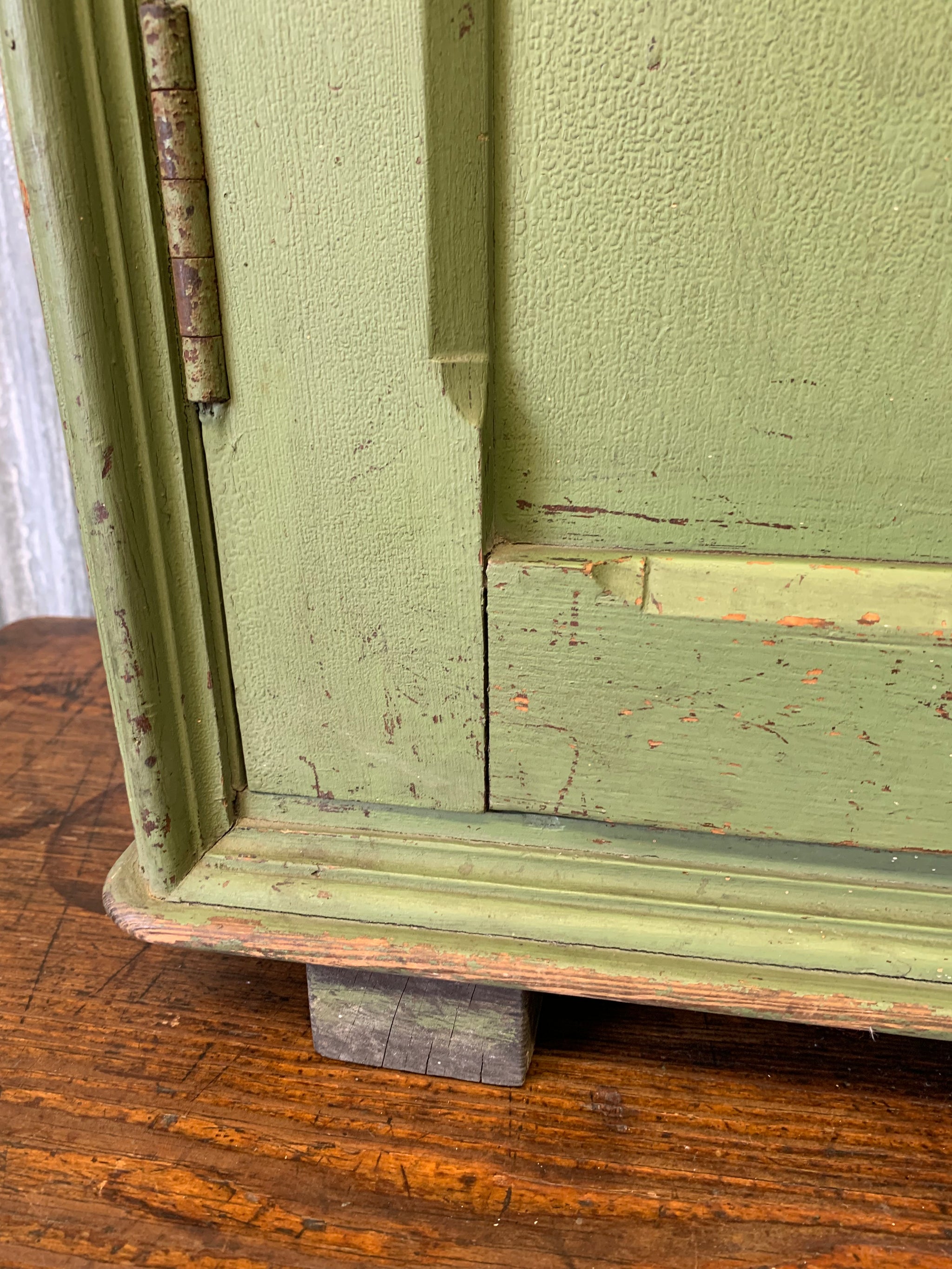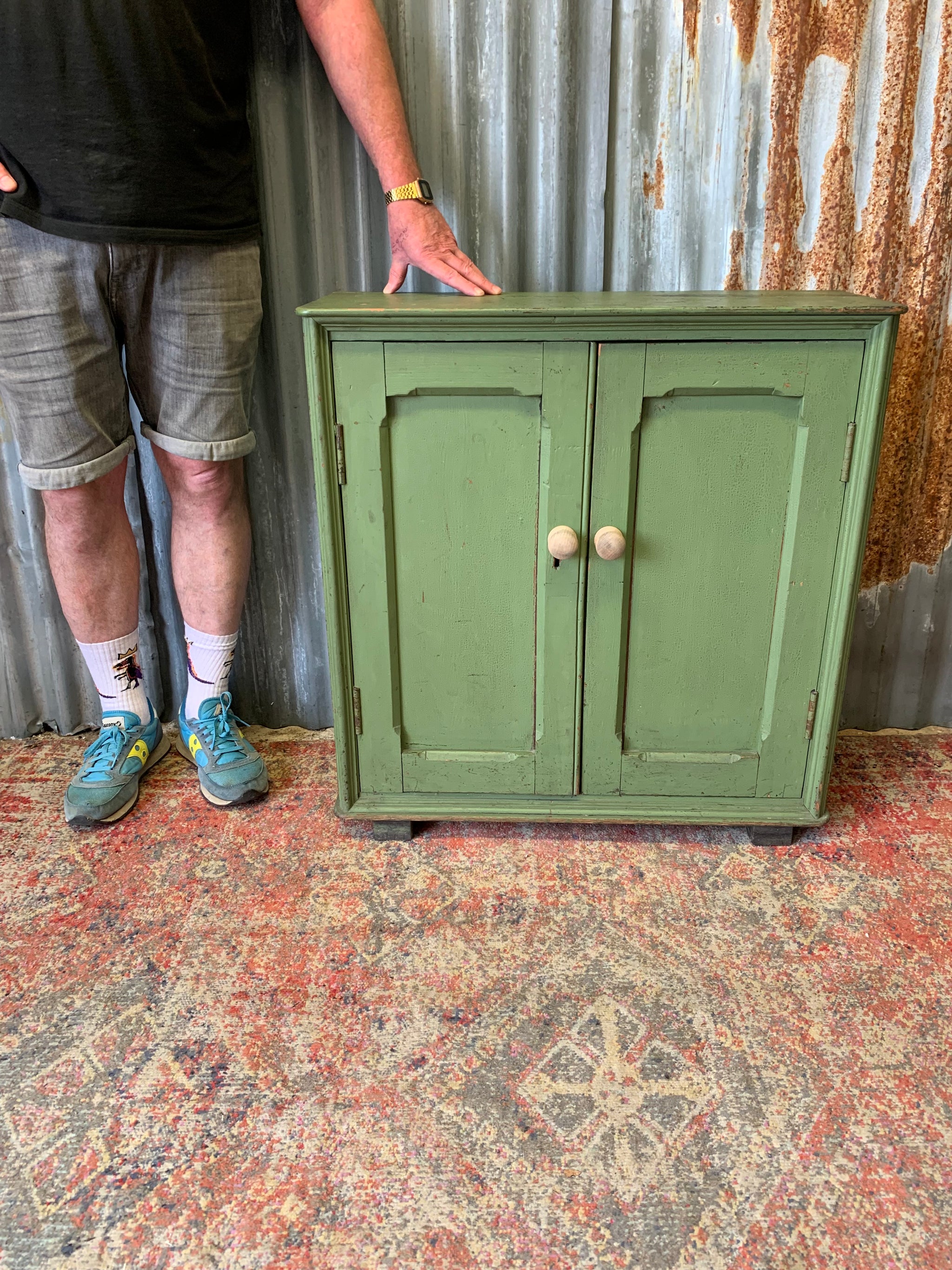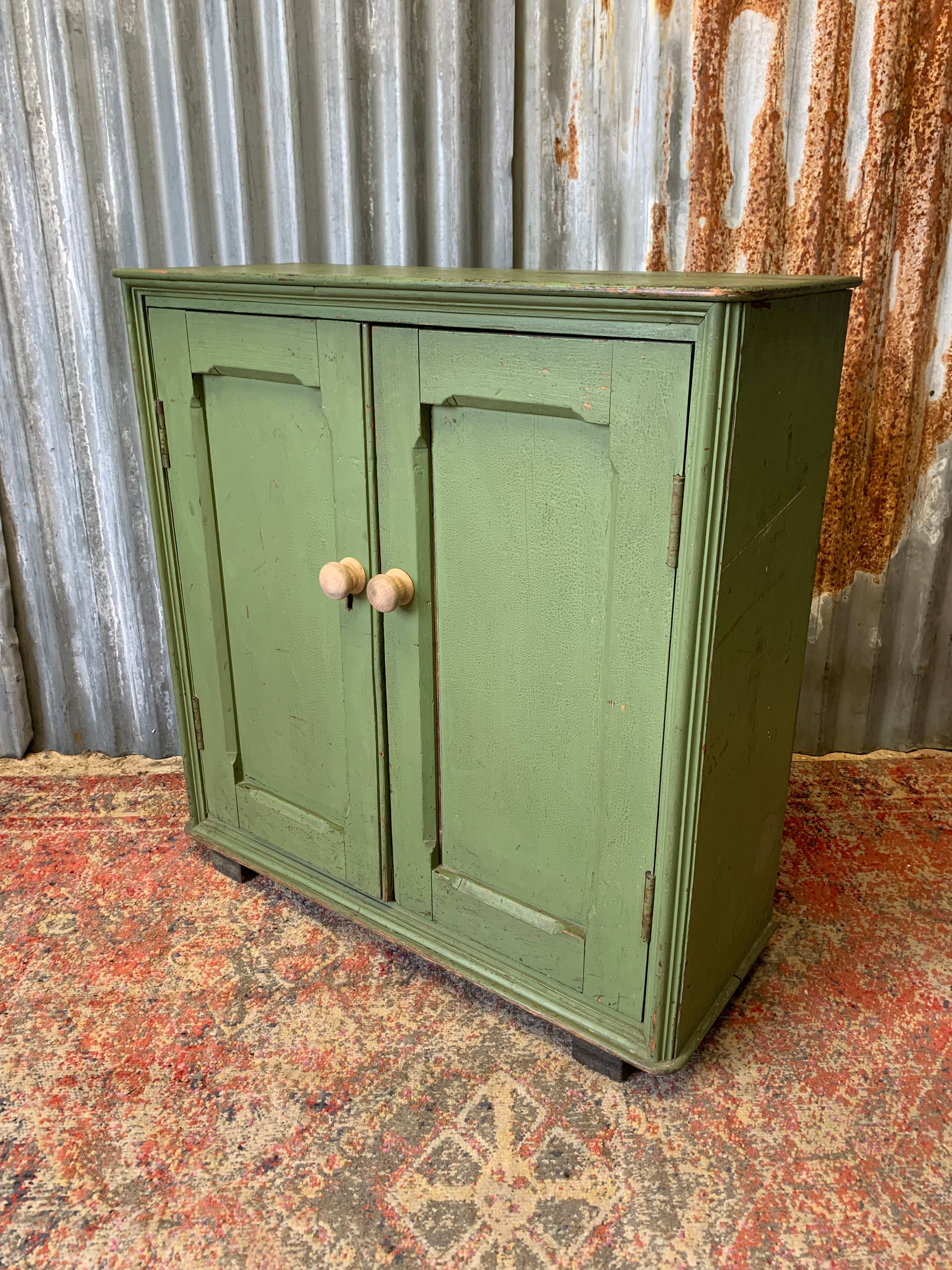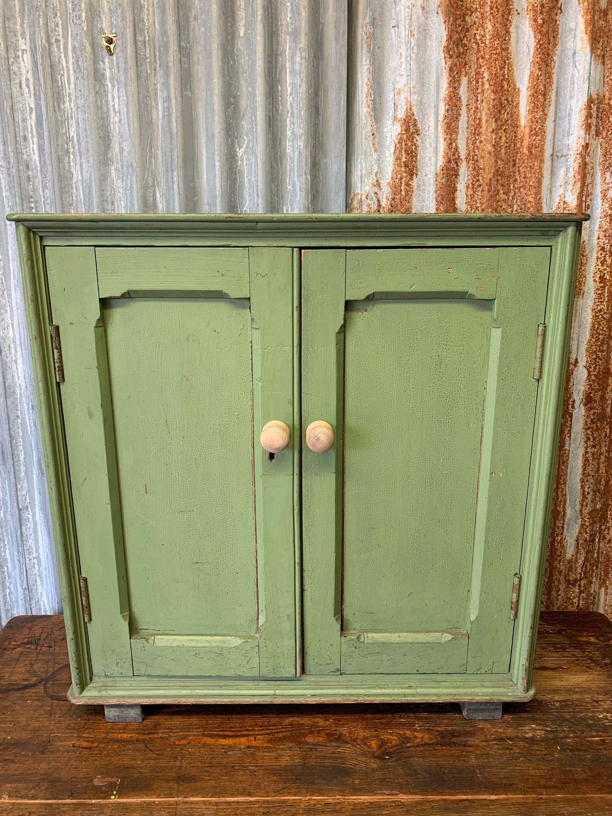An absolutely gorgeous, Victorian two door cupboard with interior shelving. The green is just delightful!
