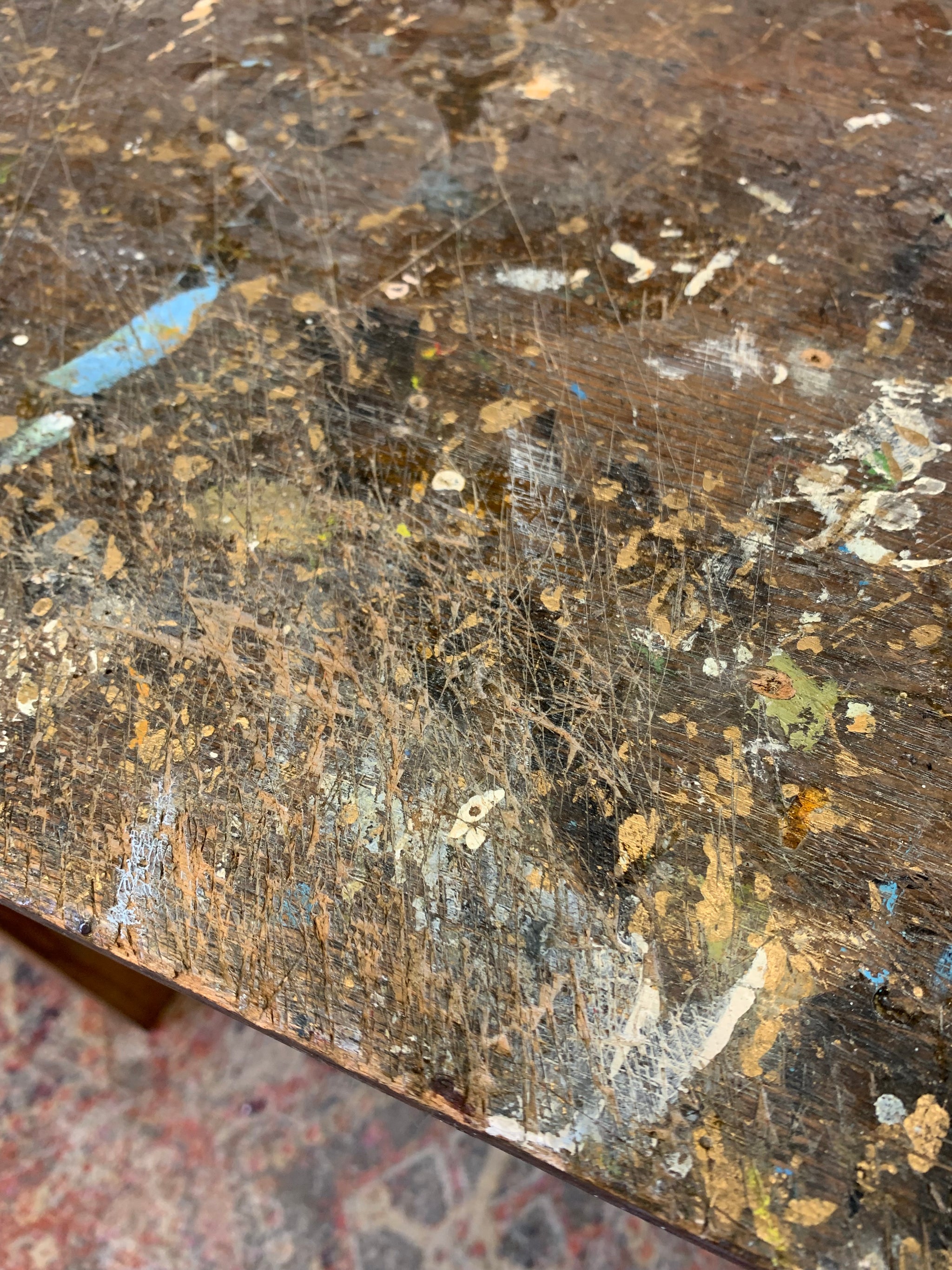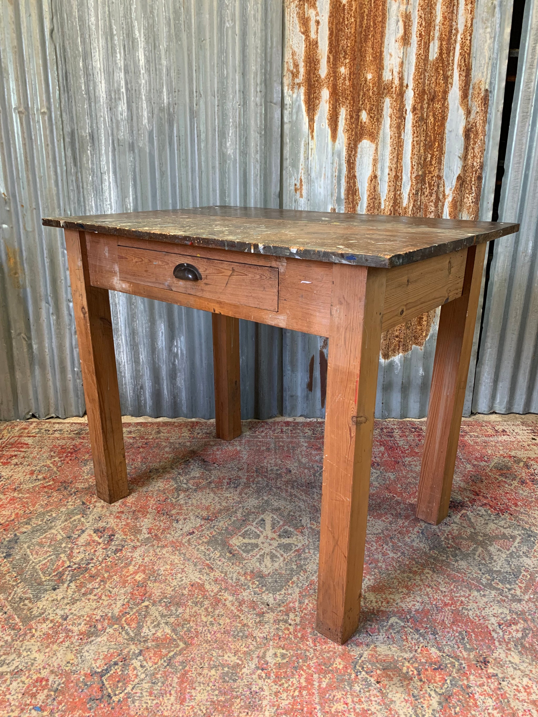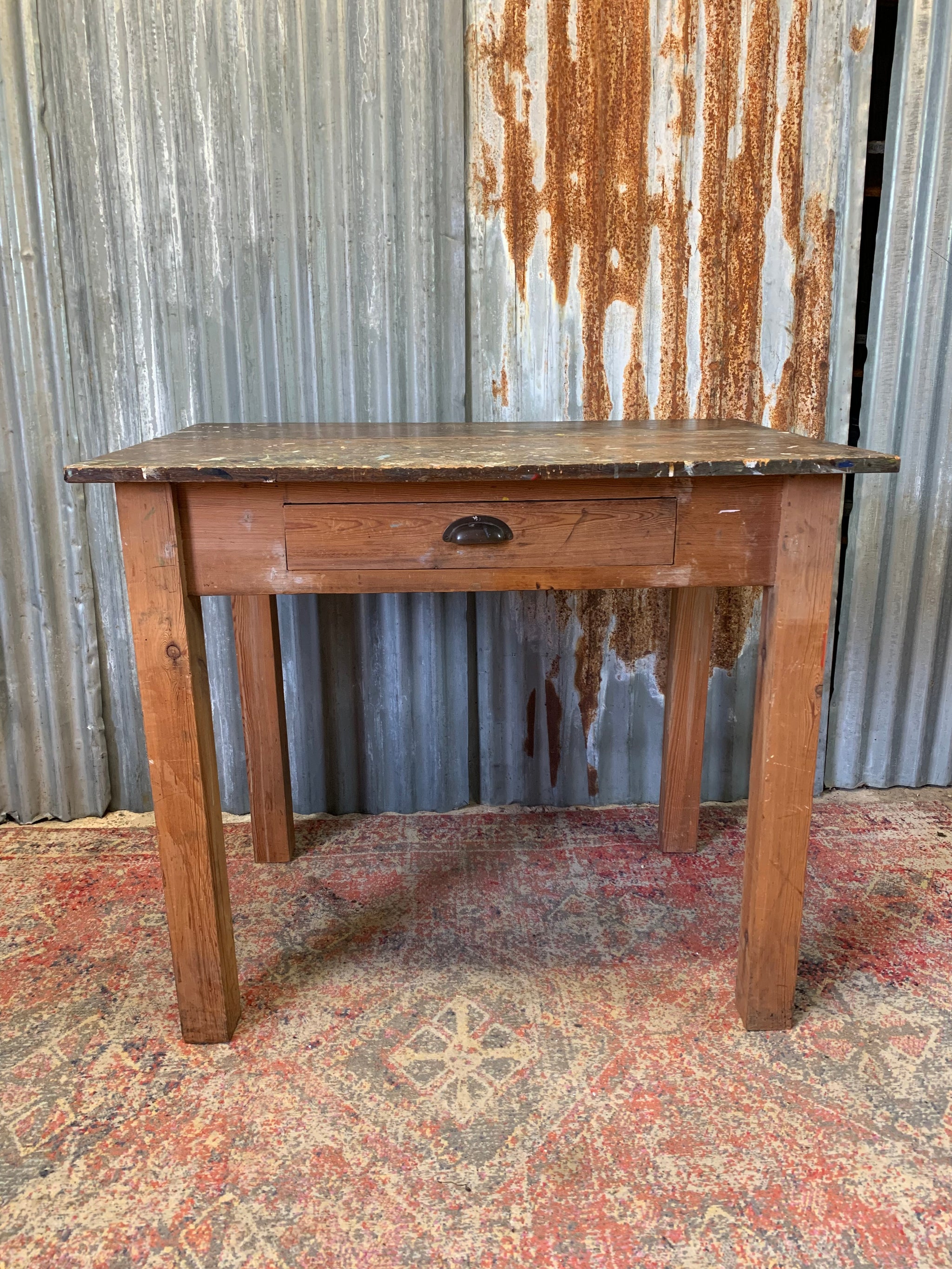 Condition: Where there are specific points to note we will detail these as far as possible but please be aware that all our items have wear commensurate with age and are as seen in the photographs. If you require any specific information please do not hesitate to get in contact. As seen in the images, but not limited to: knocks, marks and scratches throughout from rough industrial use as pictured. Plank separation to the top but no movement- both are solid. Structurally sound come what may!