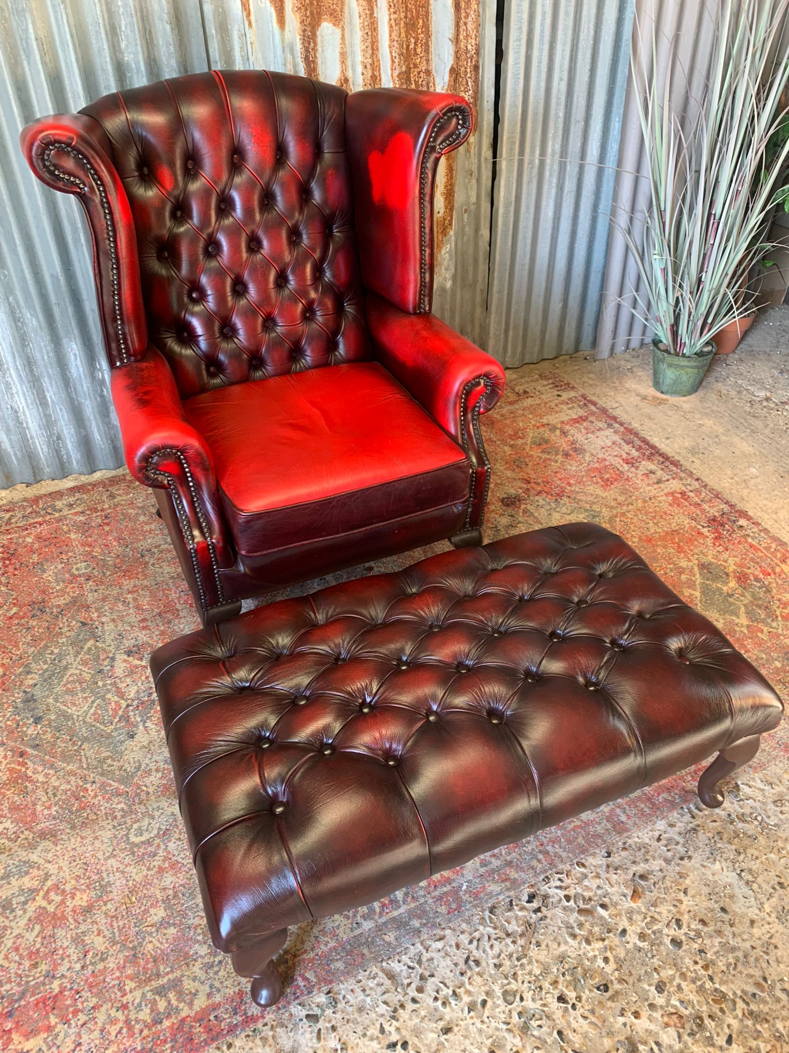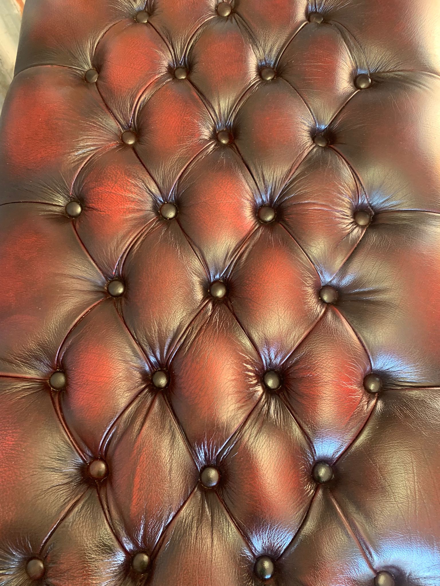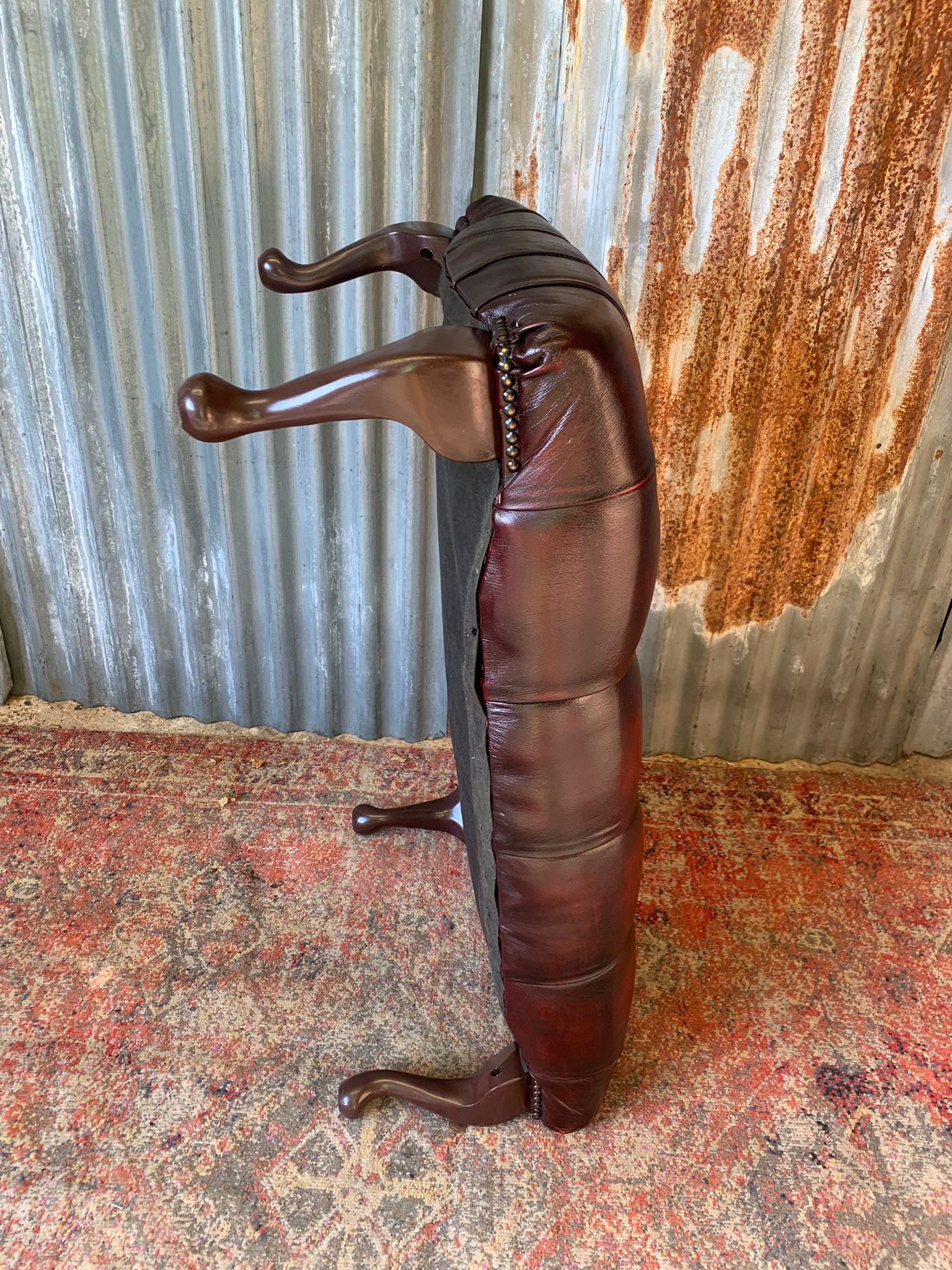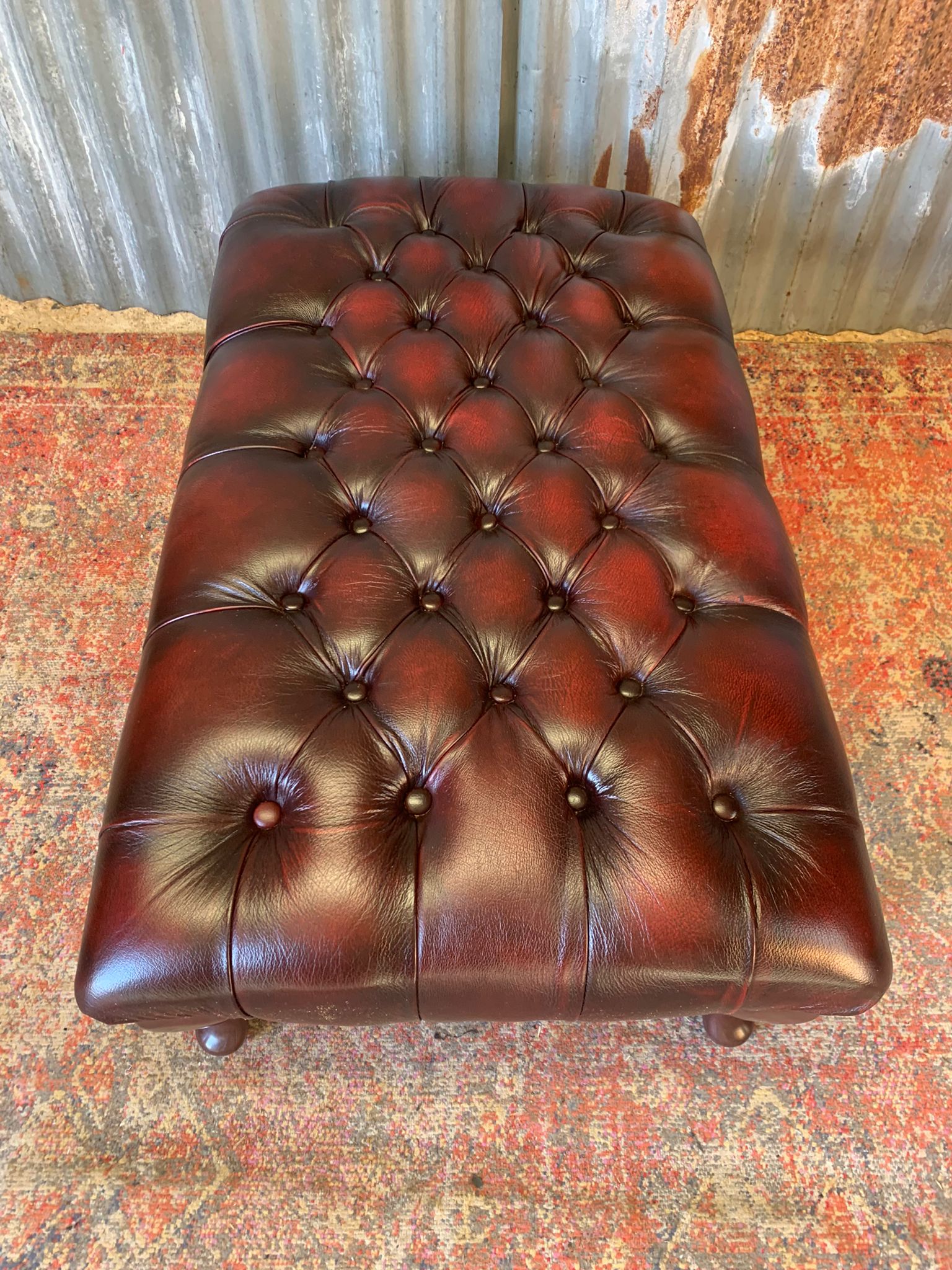 A beautiful, large red leather footstool. Fully buttoned with lovely cabriole legs. A whopper at 98cm wide!