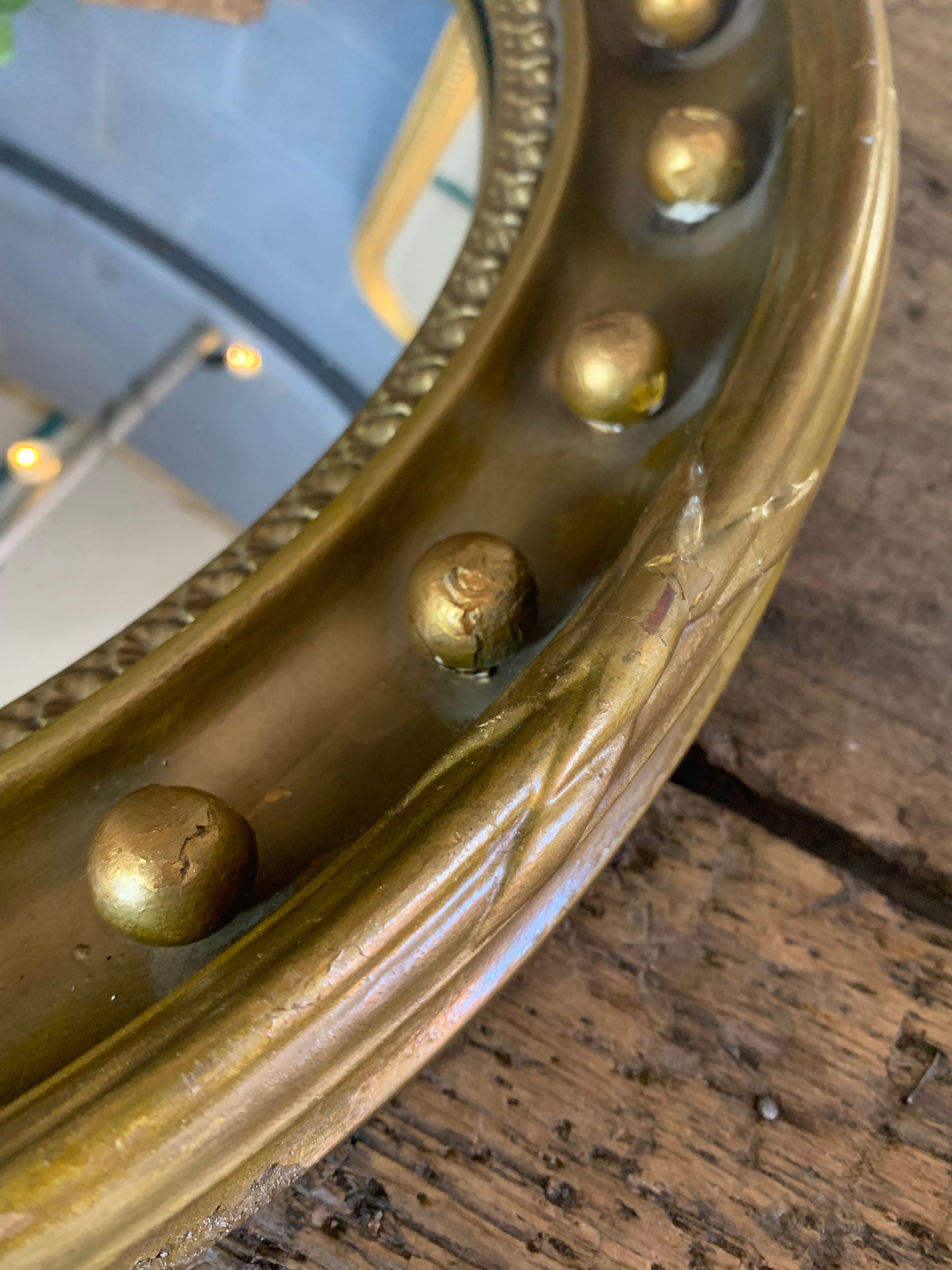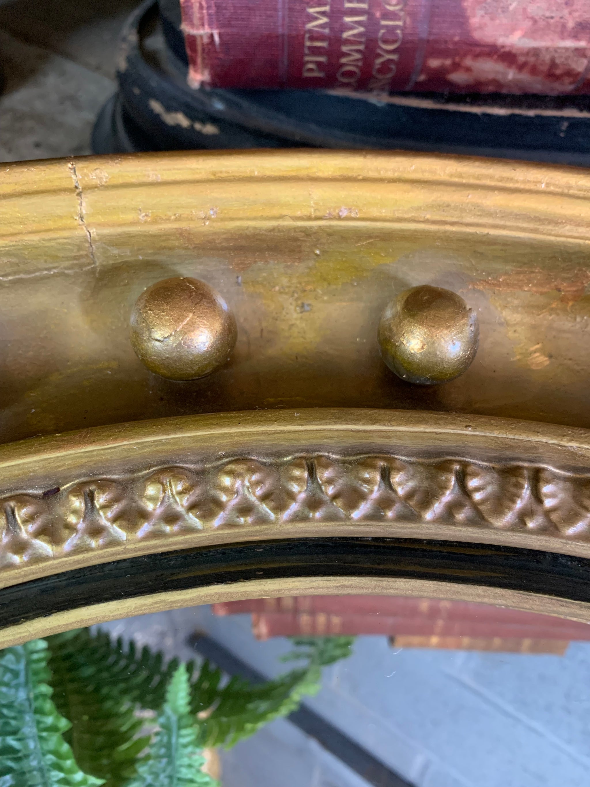 Deep surround with Regency style repeated ball detailing, and glass plate with the perfect amount of foxing.