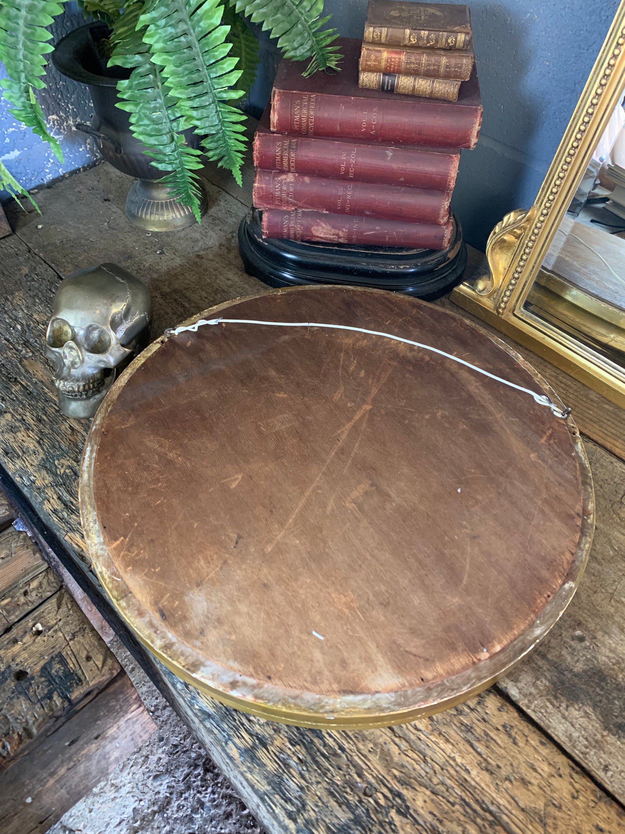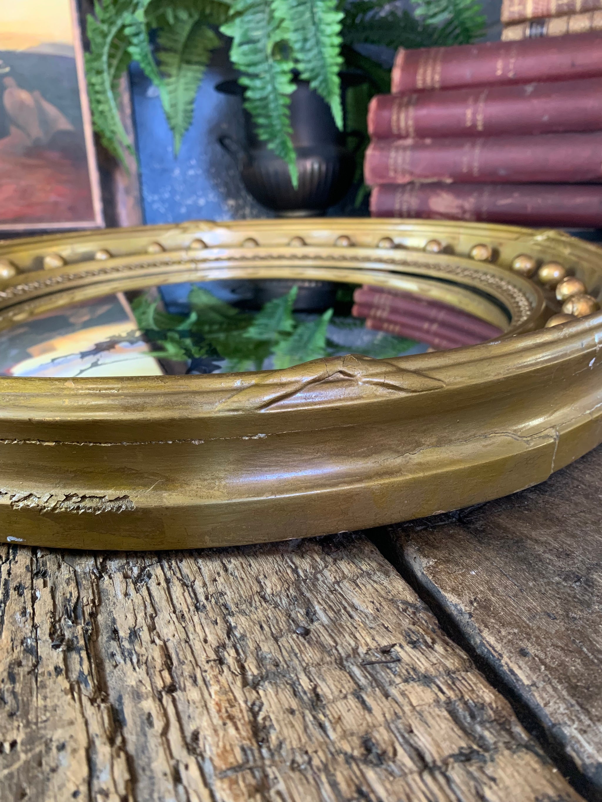 Where there are specific points to note we will detail these as far as possible but please be aware that all our items have wear commensurate with age and are as seen in the photographs. If you require any specific information please do not hesitate to get in contact. As seen in the images, but not limited to: wear to both frame and plate commensurate with age and use. The balls have lost gesso over time and have been repainted across the life of the mirror. Displays well.
