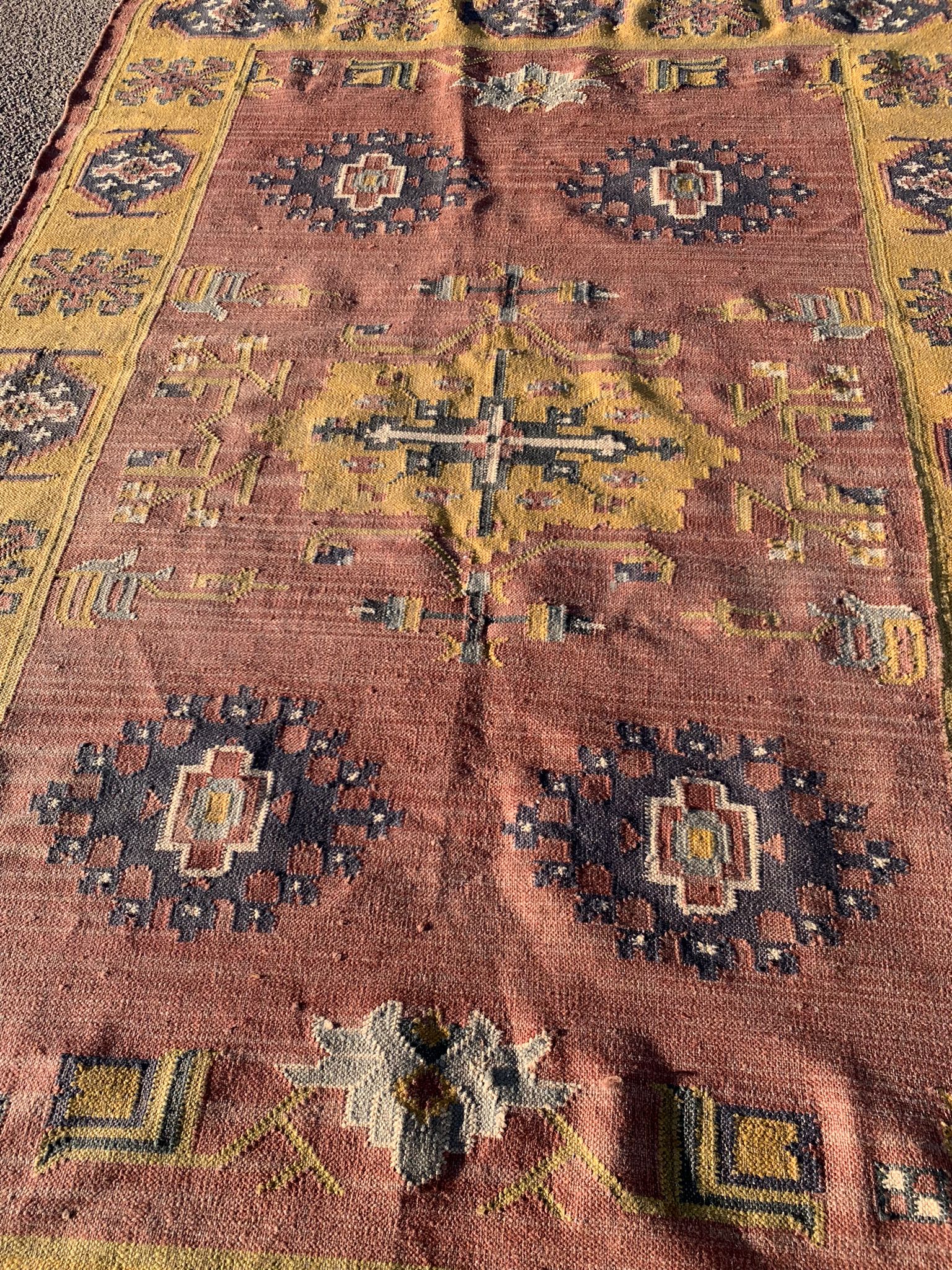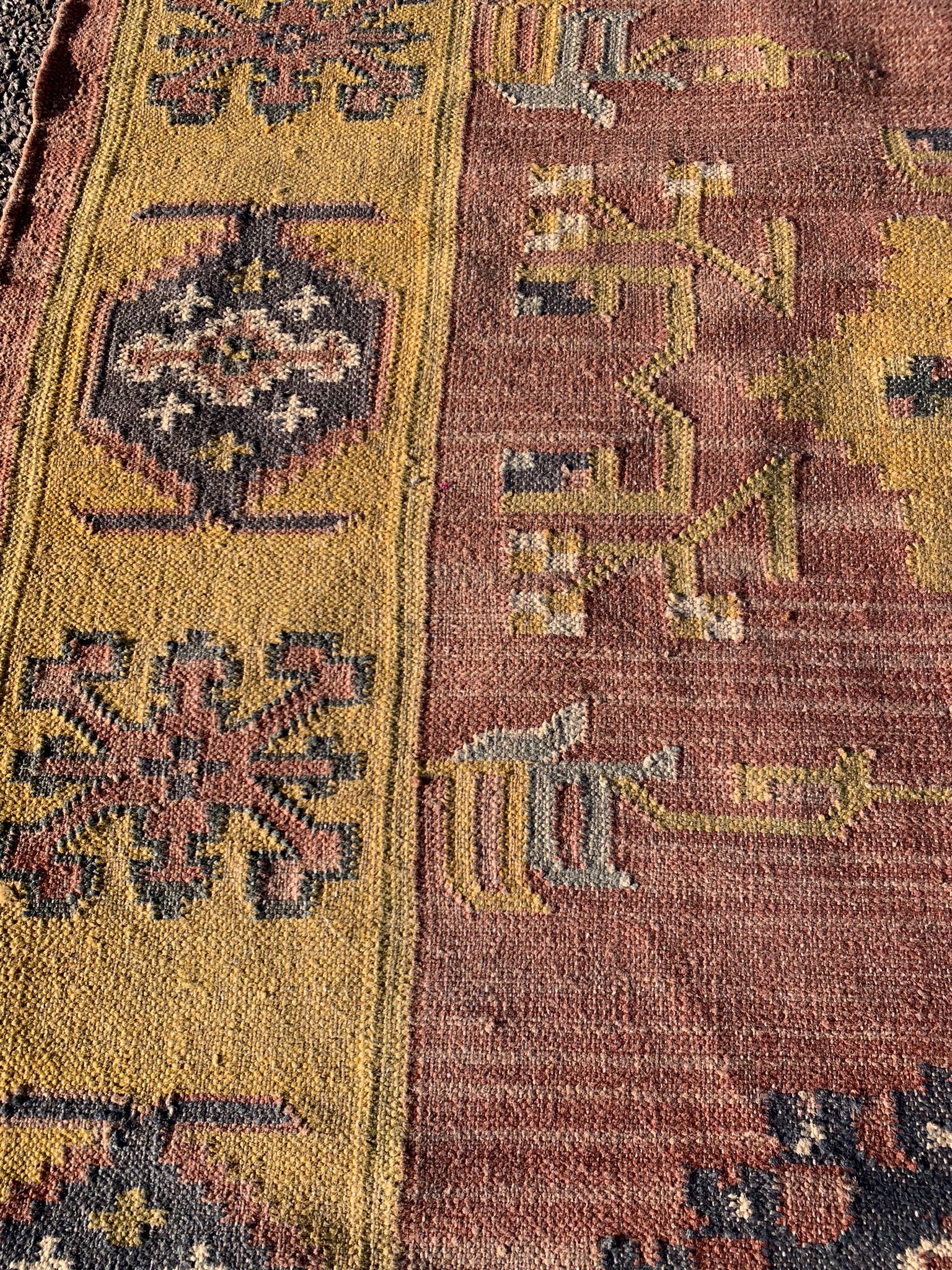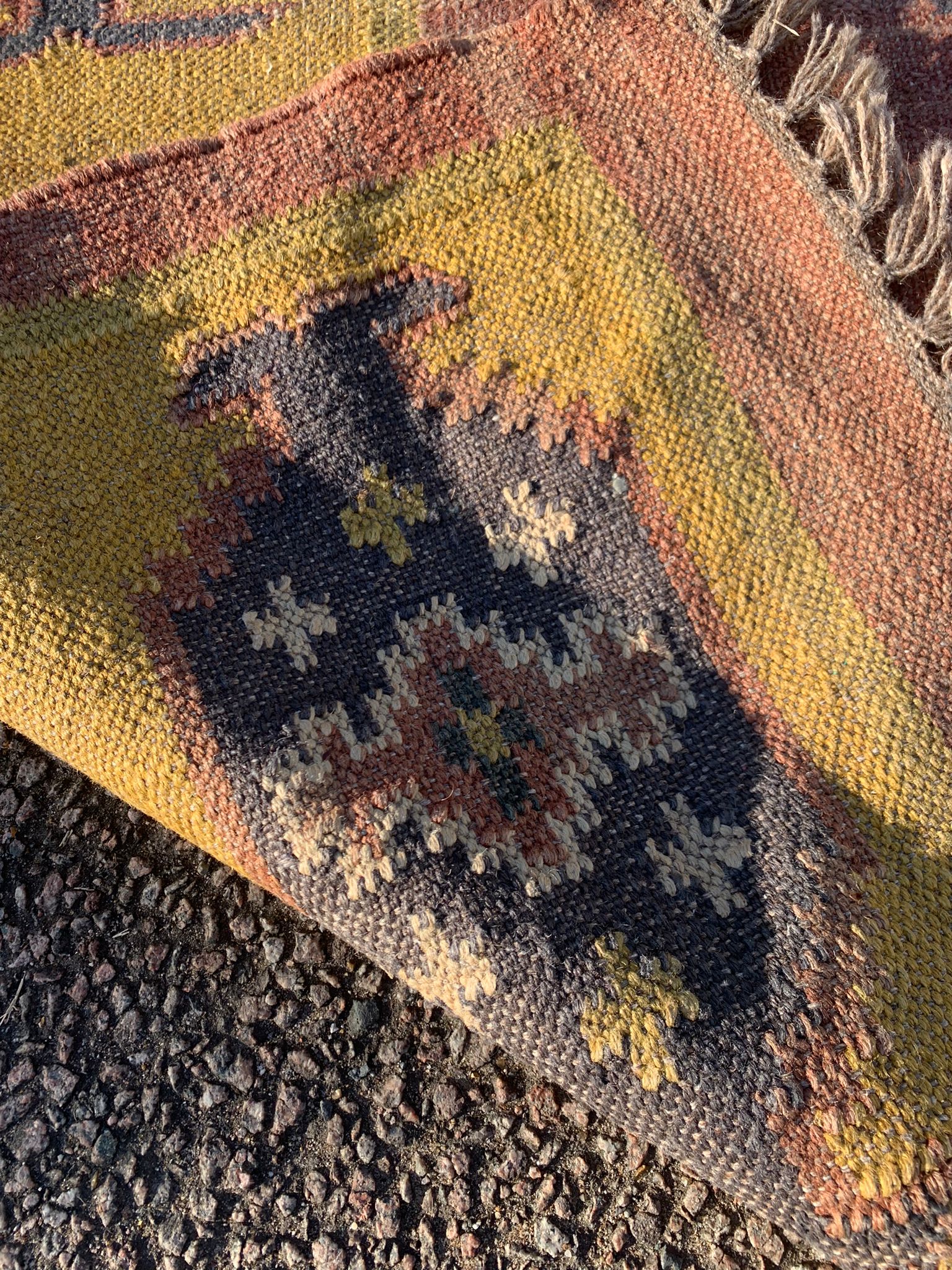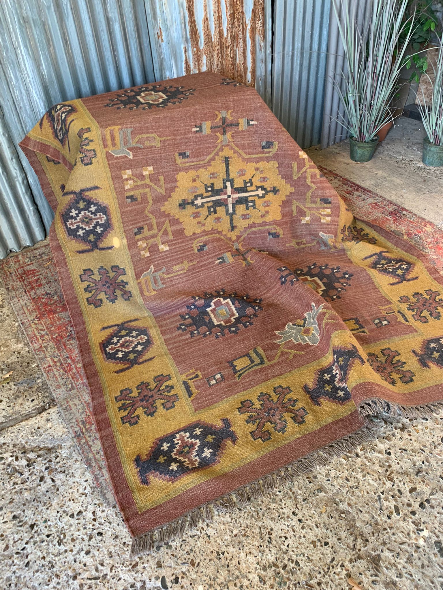 A gorgeous old rug with beautiful patterns and warm earthy colours. Classic kilim style.