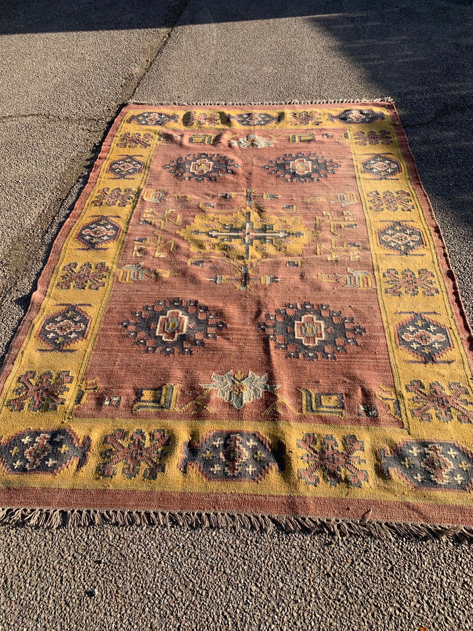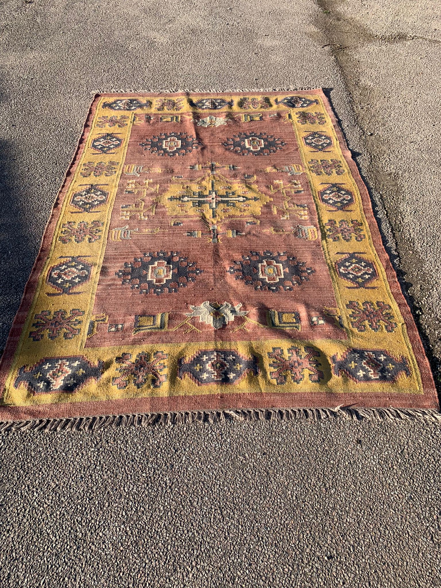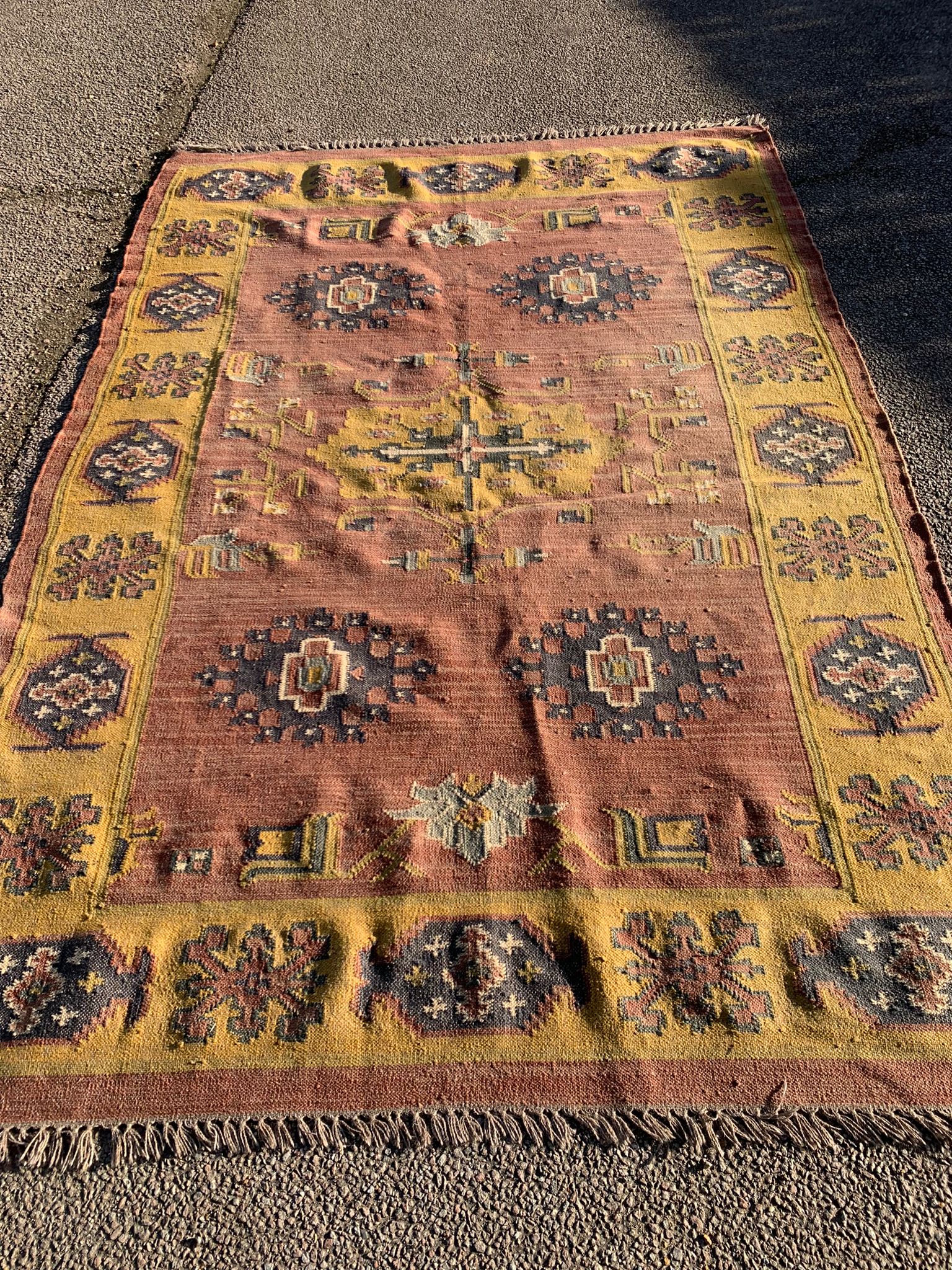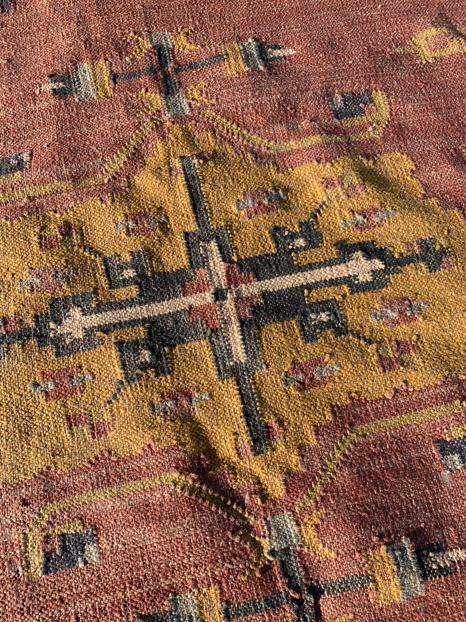 A gorgeous old rug with beautiful patterns and warm earthy colours. Classic kilim style.