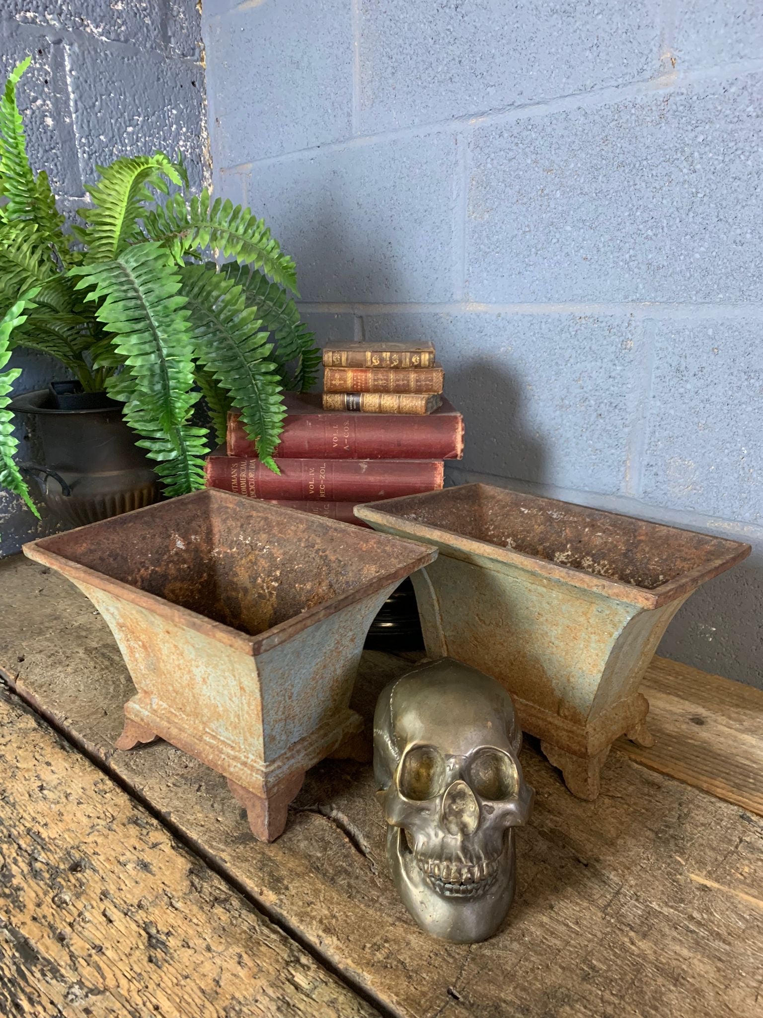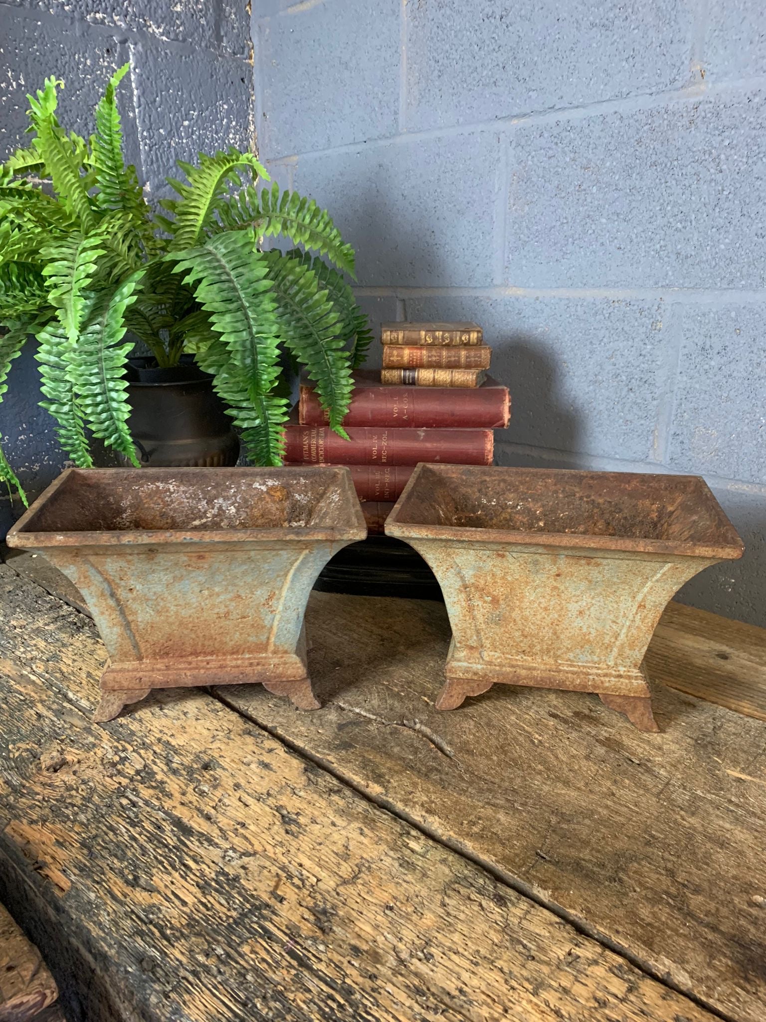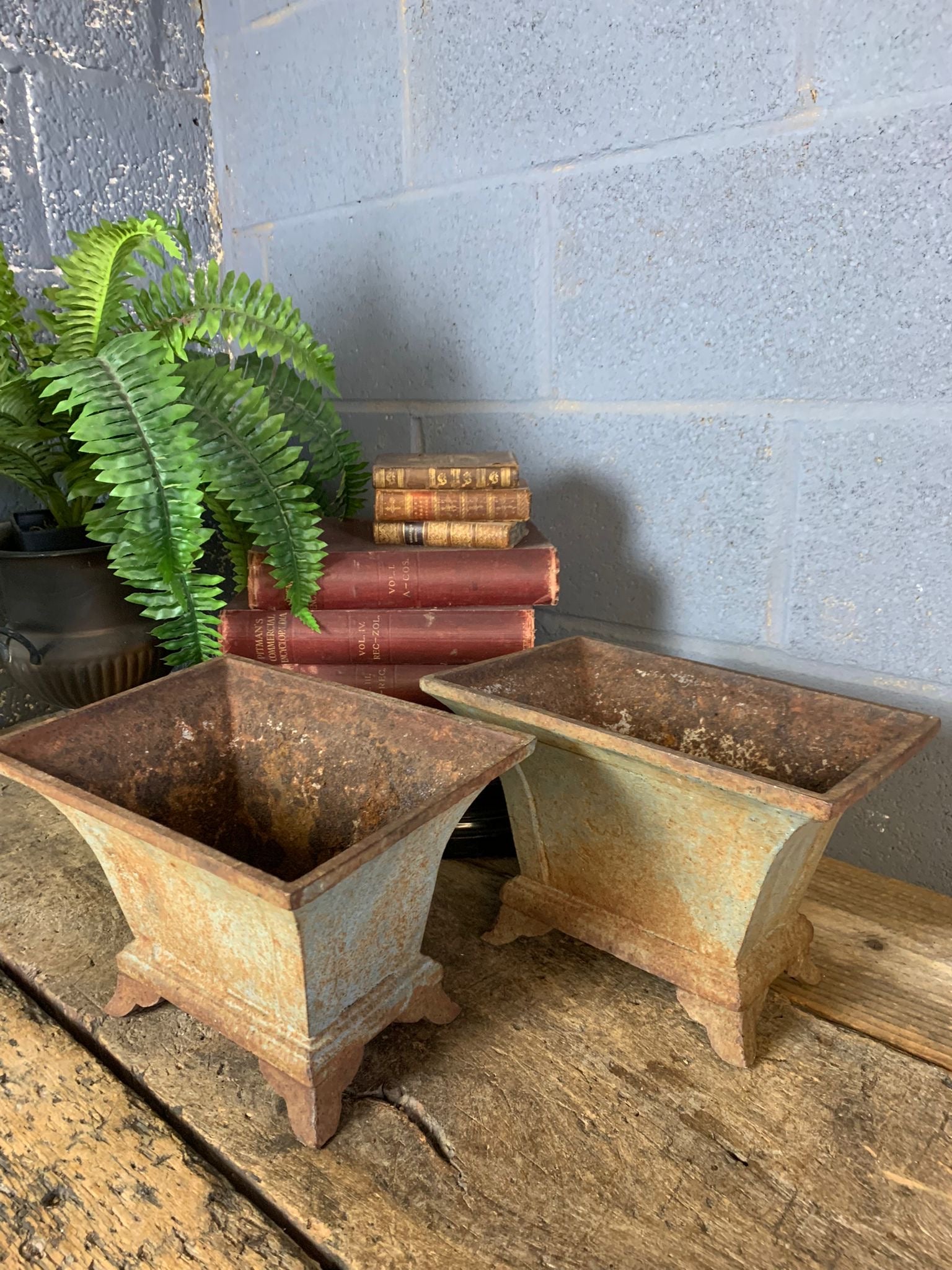 These charming and unusual rectangular urns stand on nicely shaped feet.