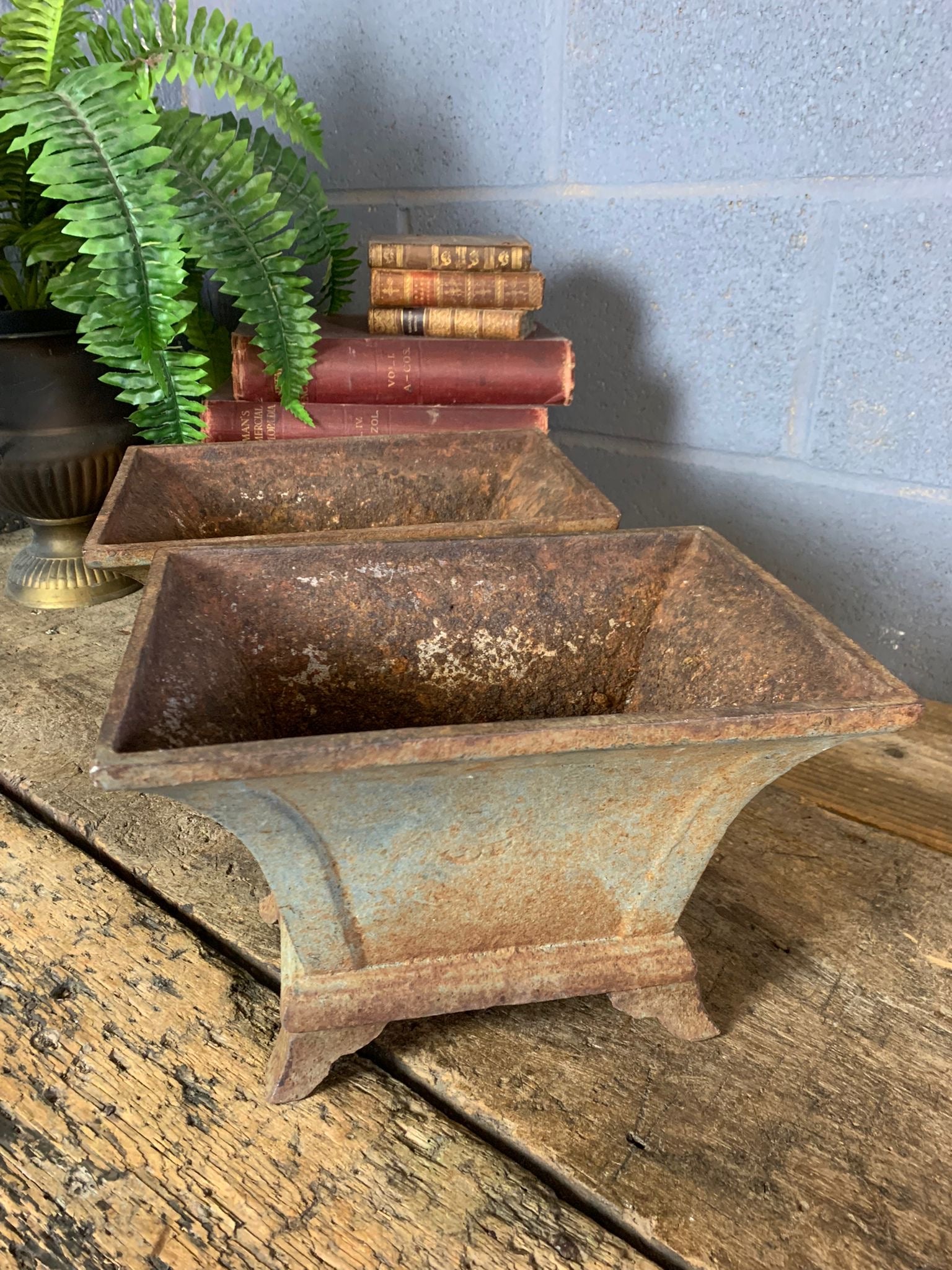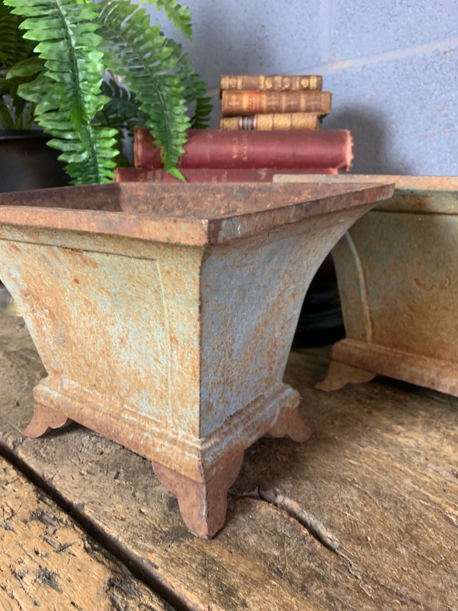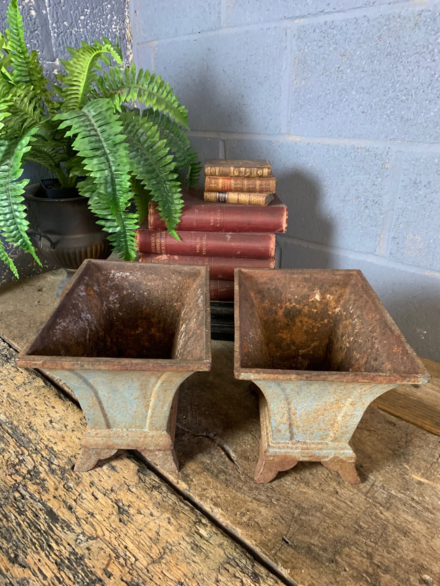These charming and unusual rectangular urns stand on nicely shaped feet.
