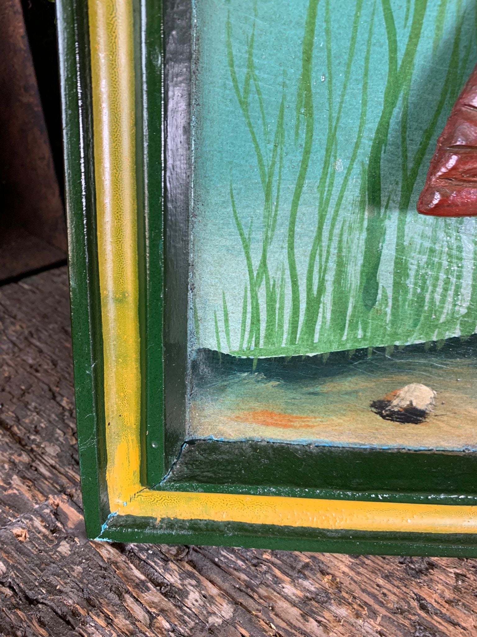Hand painted, carved and routed.