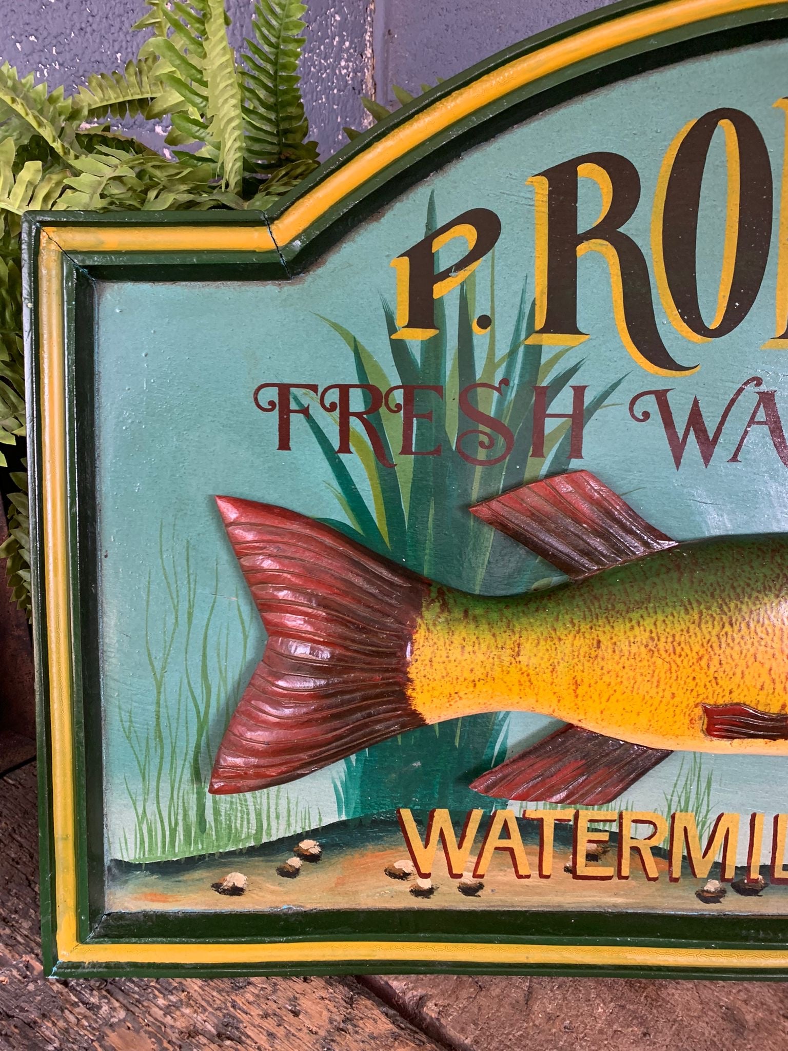 A superb, large 3D wooden fishing trade sign. Vintage in an older style.