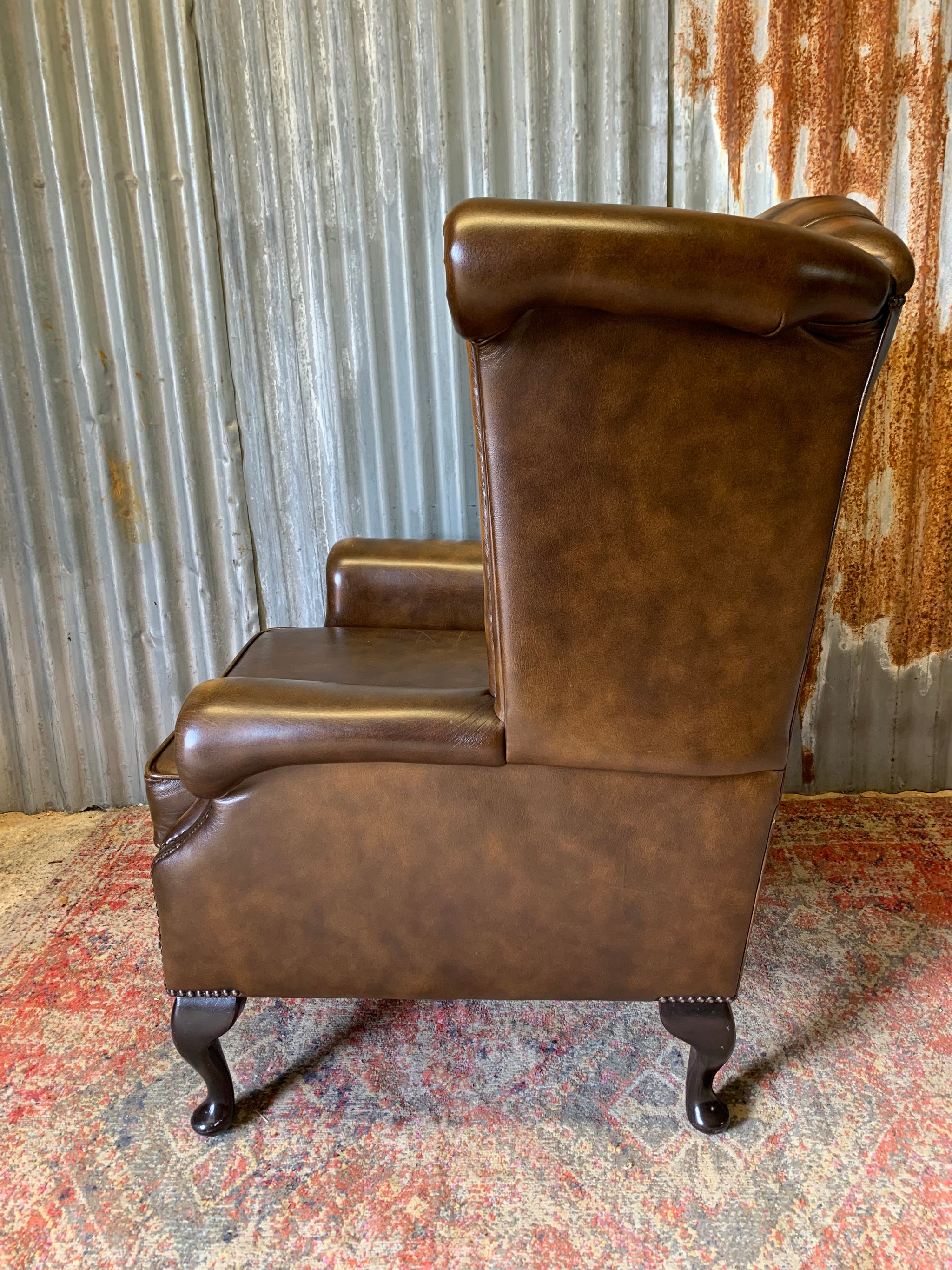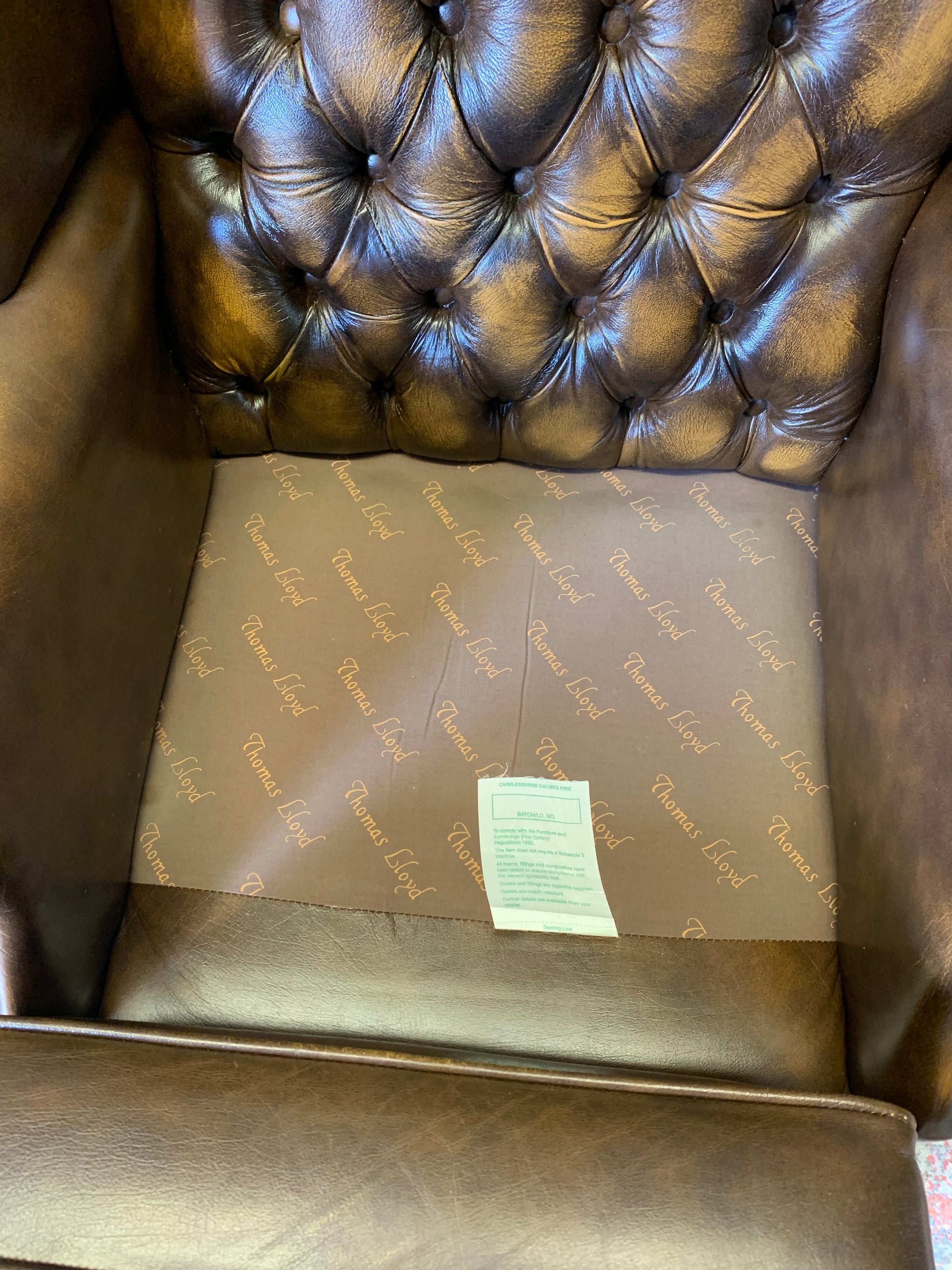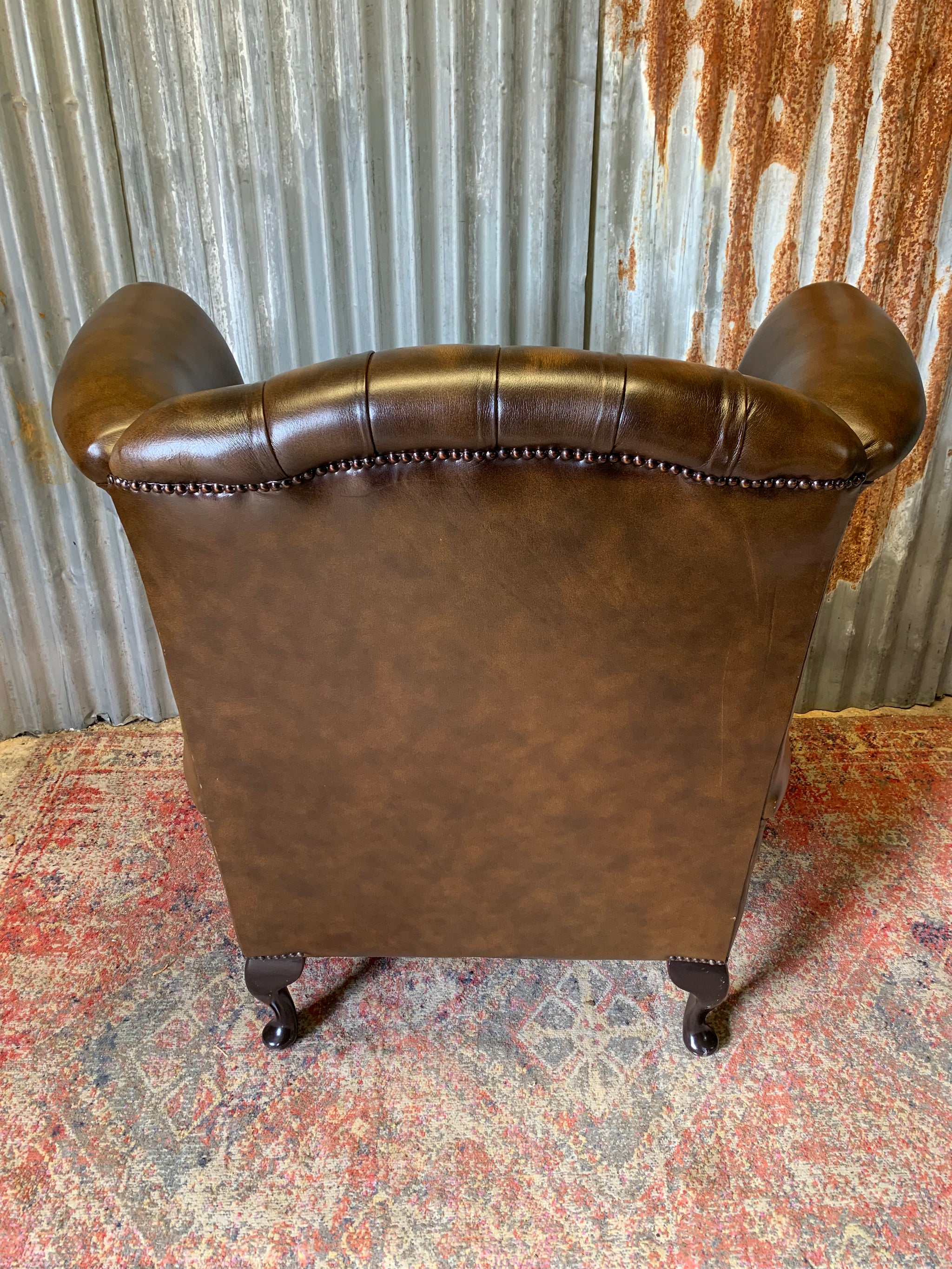 This chair is upholstered in a gorgeous warm chocolatey brown leather and is in excellent order.