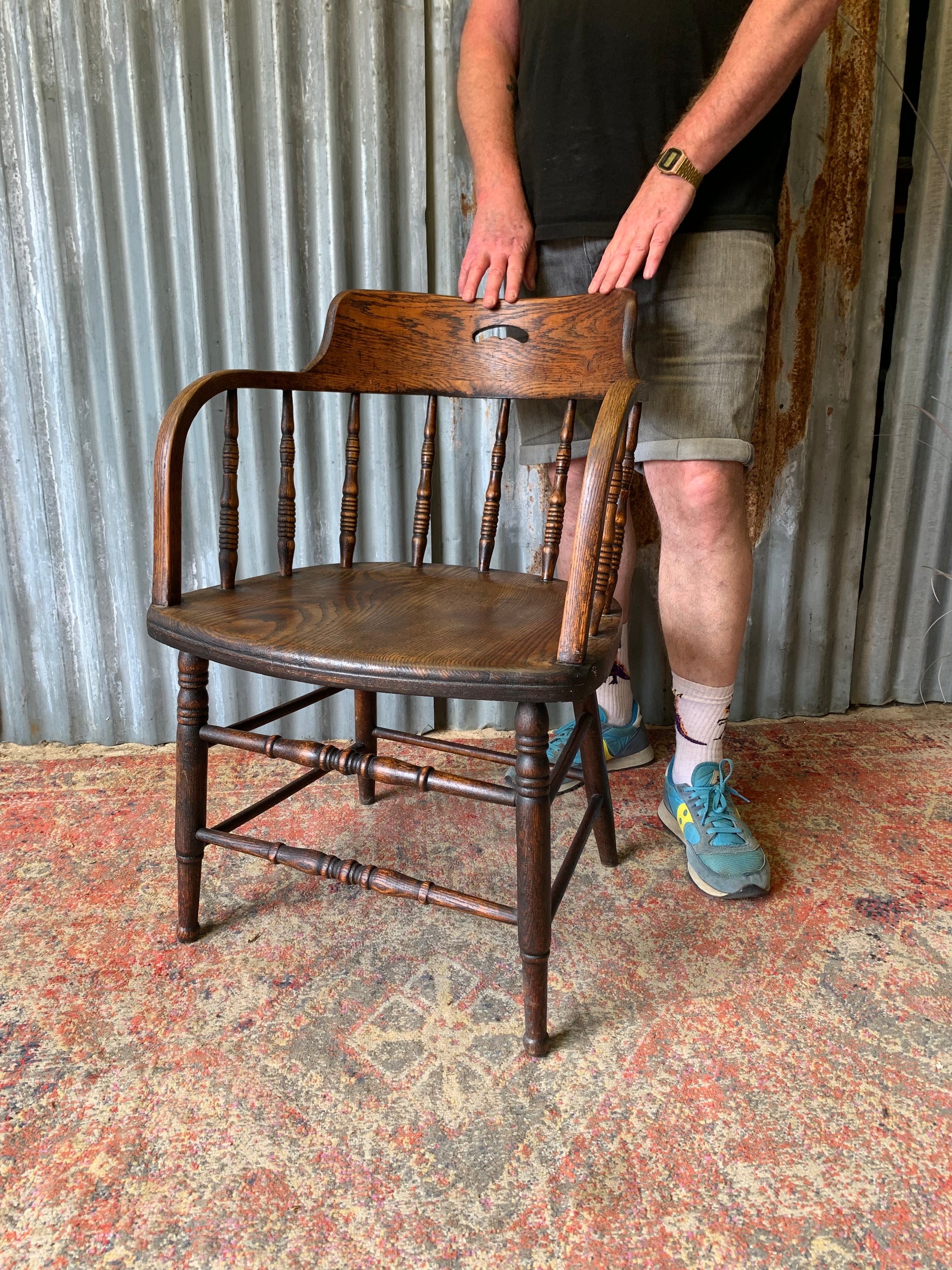 The detailing on this chair is superb - the cutout back, the turned stretchers - and the patina is to die for!