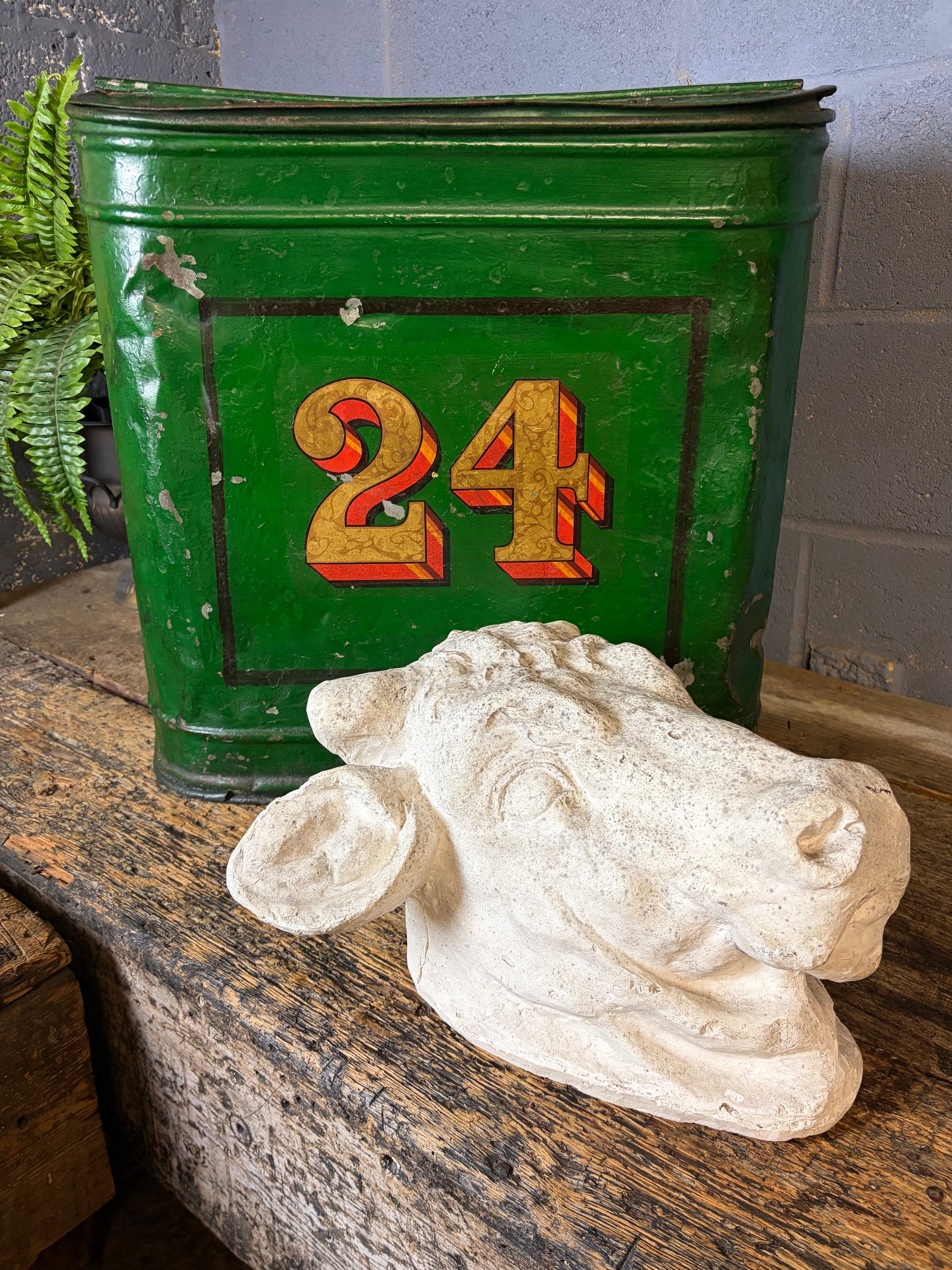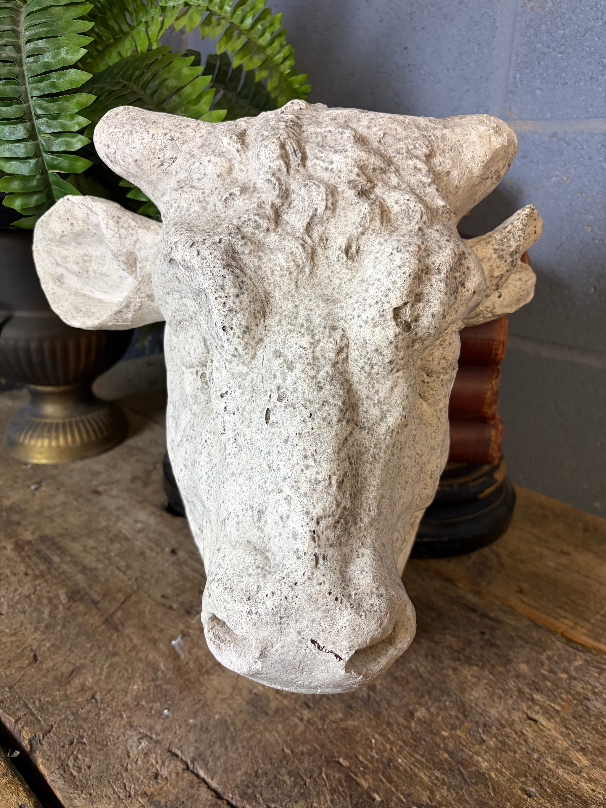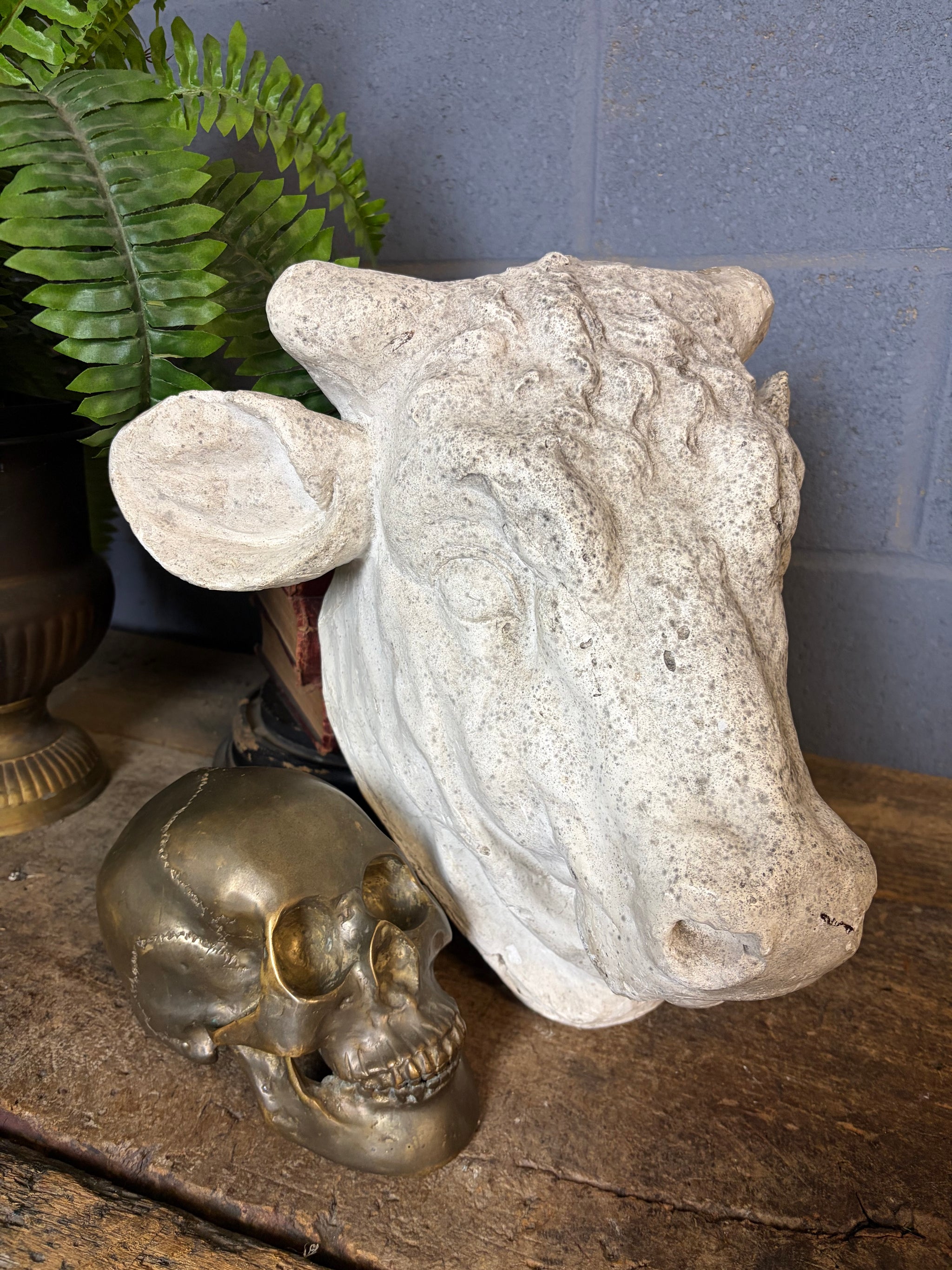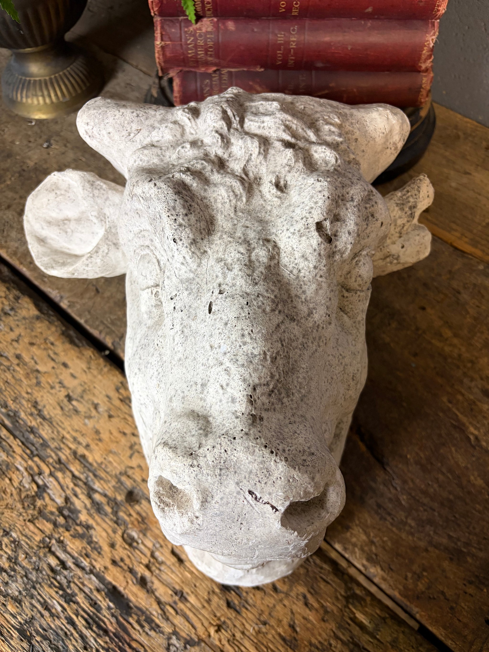 A stunning plaster model of a bull’s head.