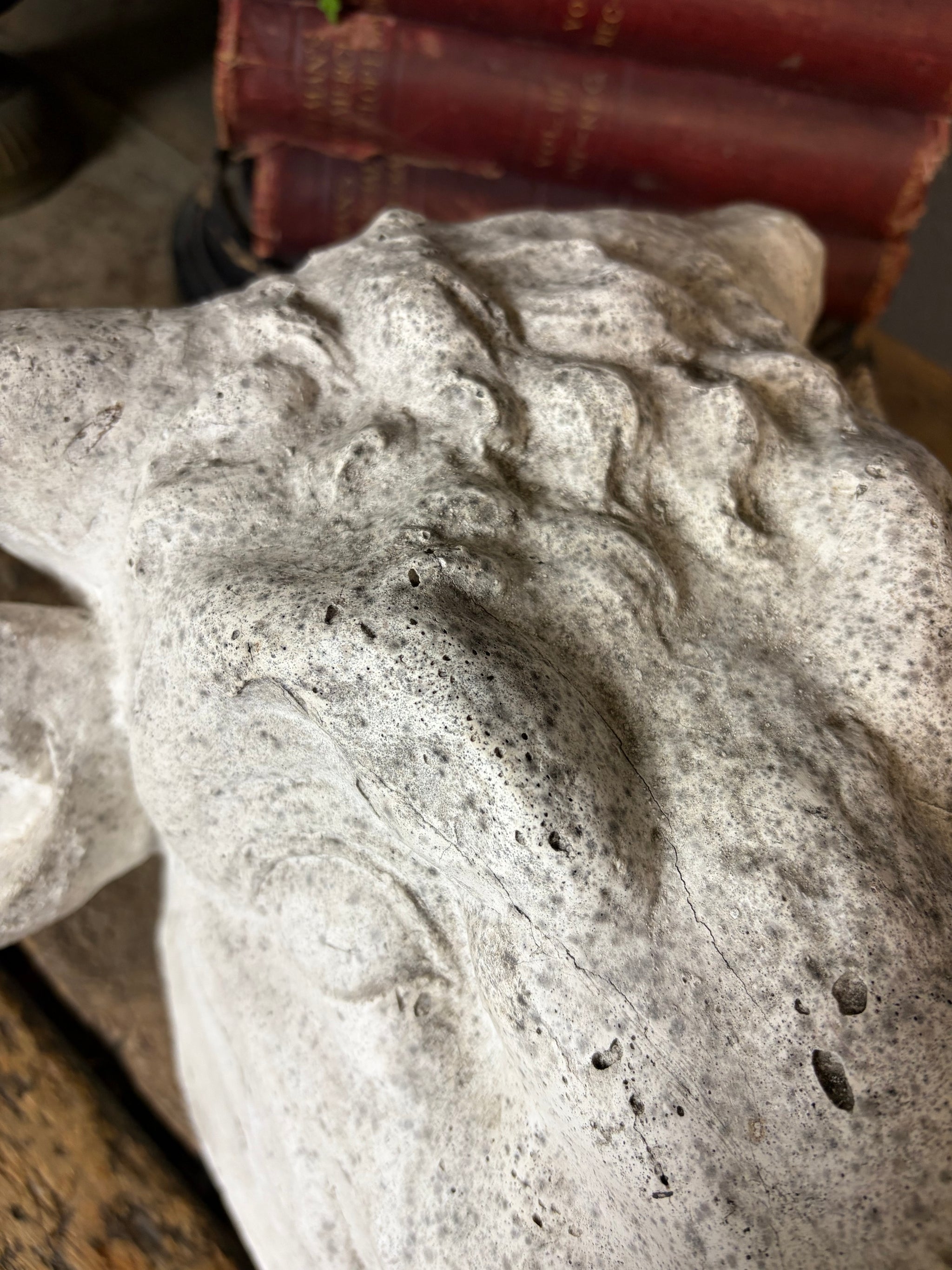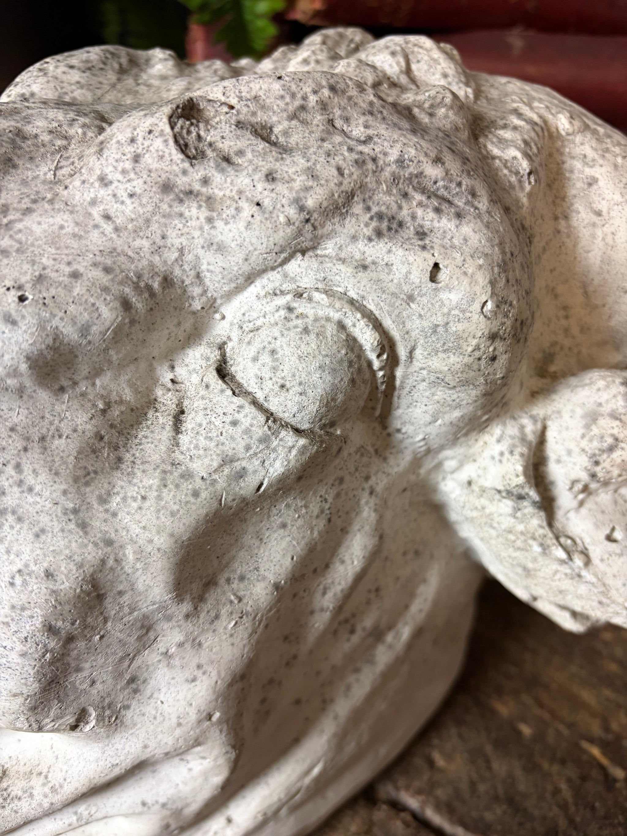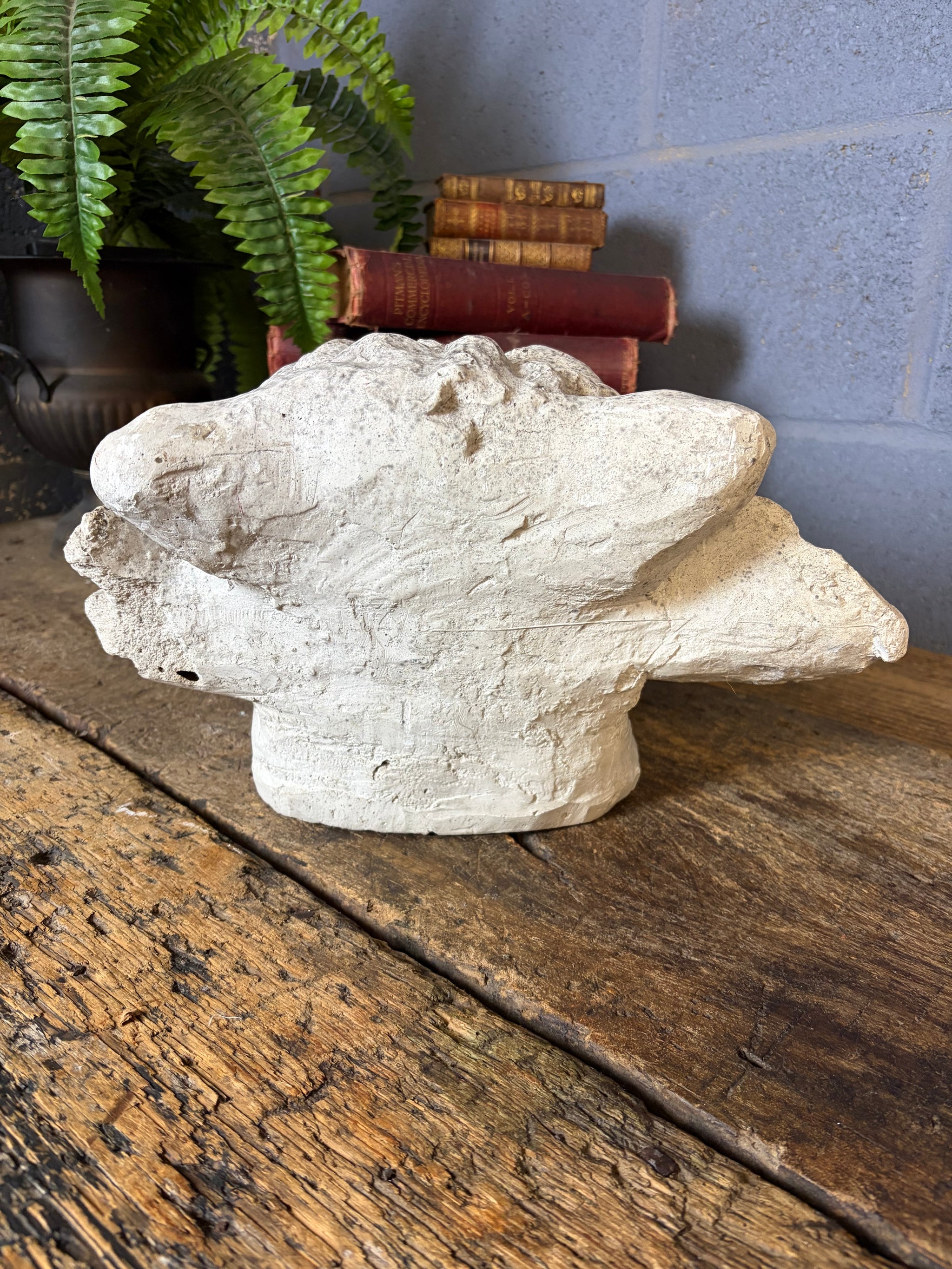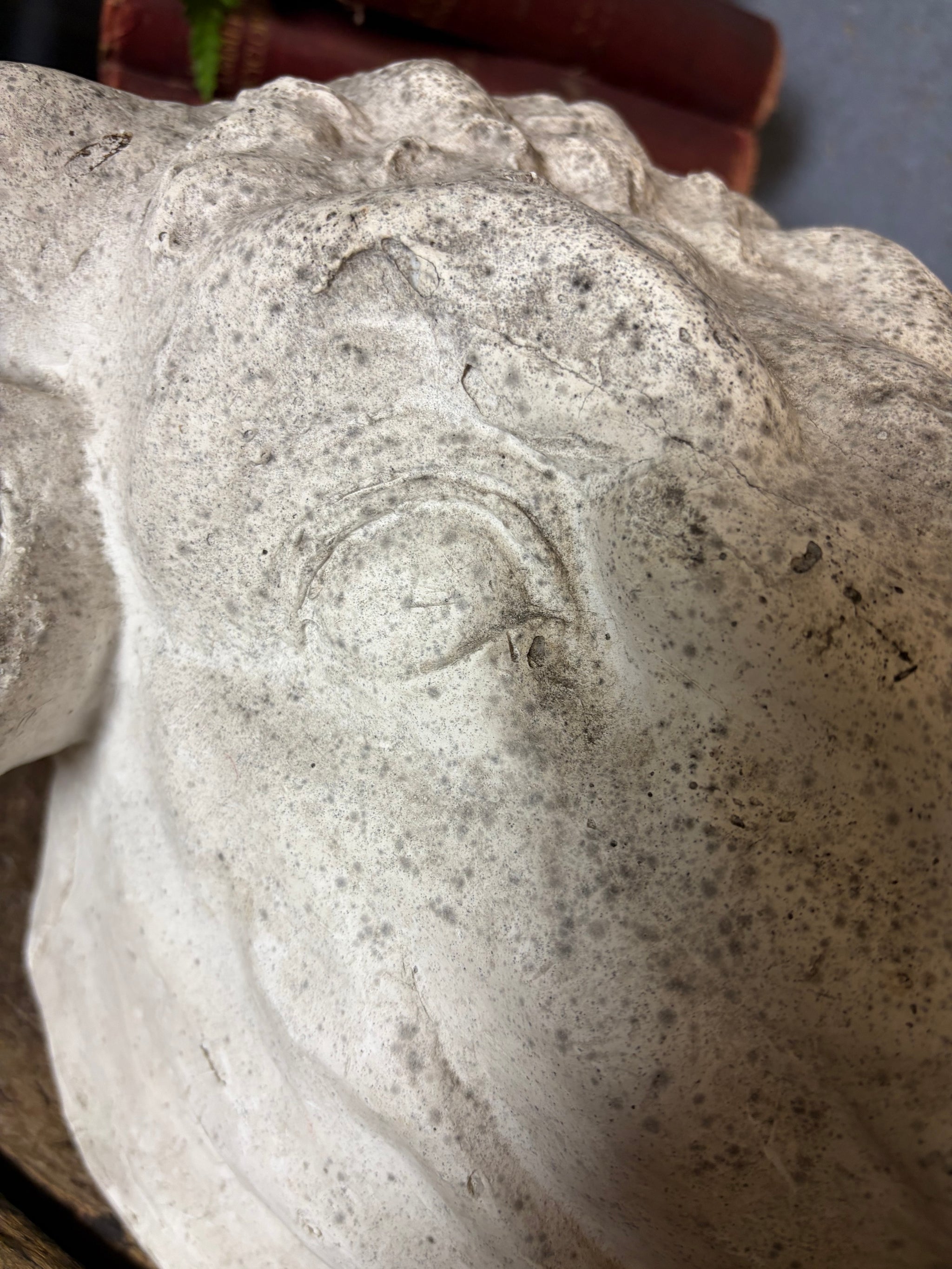 Where there are specific points to note we will detail these as far as possible but please be aware that all our items have wear commensurate with age and are as seen in the photographs. If you require any specific information please do not hesitate to get in contact. As seen in the images, but not limited to: wear to the plaster surface as shown. Old loss to one ear - edges are smooth and rounded.